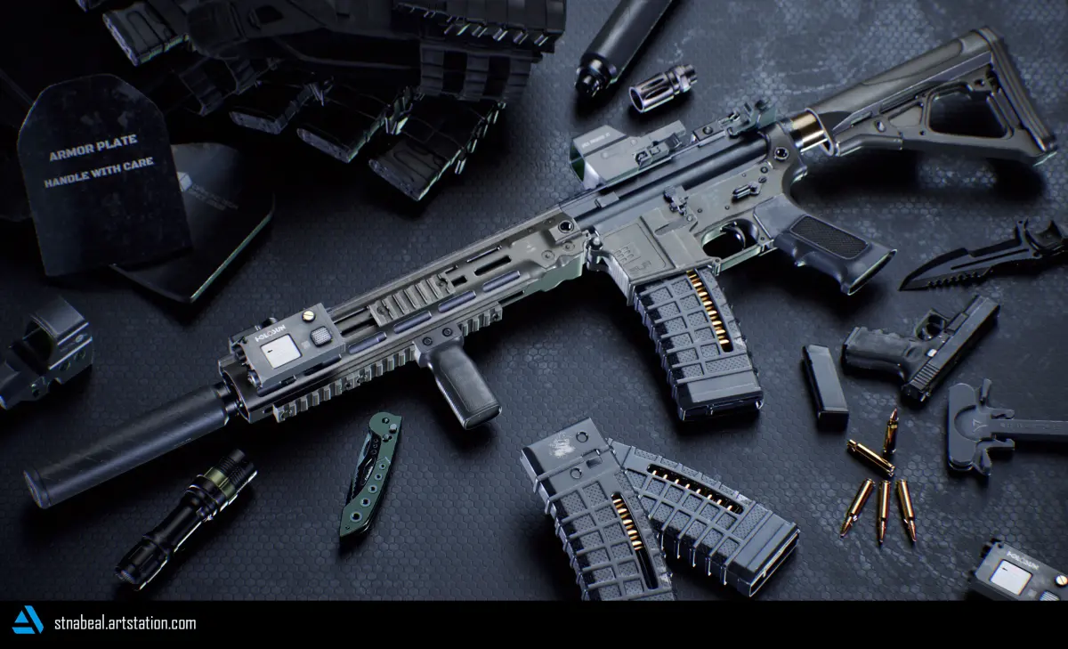 - 5 distinct Texture Sets for max texel density (Barrel, Stock & Grip, Attachments, Visor, Reddot)