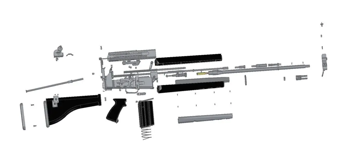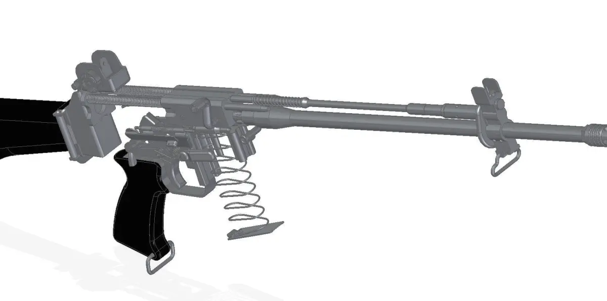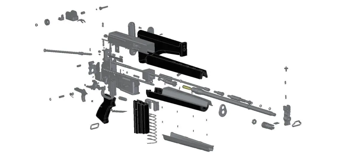 Full assembled model of AR-180 and 5,56mm NATO bullet.