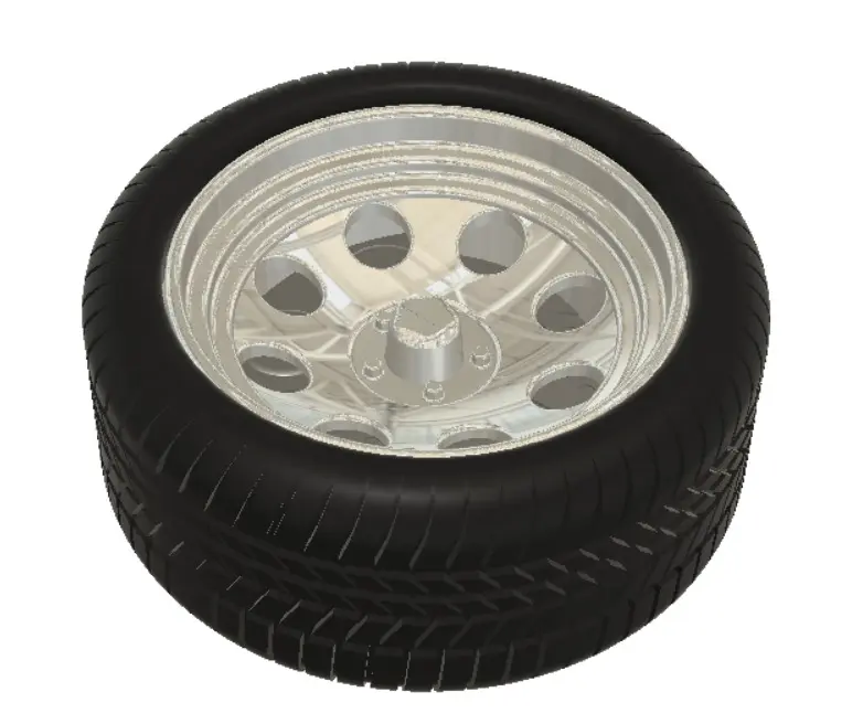 American Racing Baja inspired wheels in 1/25 scale; comes in a variety of sizes with diameters and widths, as well as the tires to match with three different styles. All wheel sizes come with disc brakes to go with them. Hubs are 1/8" for standard plastic model kit spindle, may be adjusted to accommodate plastic axles.