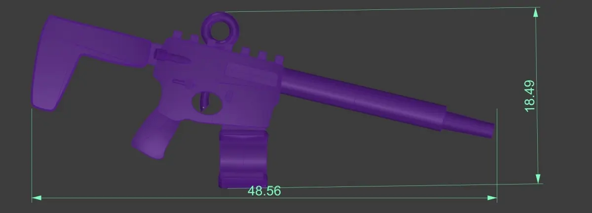 AR pistol pendant model up for sale. This isn't functional in any way. It is simply for jewelry making purposes. All dimensions are in the last two pictures.