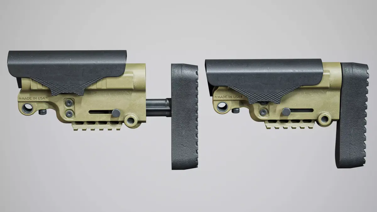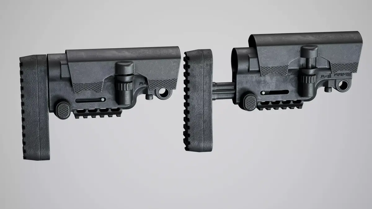 Game-Ready high-quality 3d model AB Arms mod x gen3 stock for Unreal Engine, Unity and other PBR game engines, renderers, first Person Shooters, VR games, and your other projects. Model has two texture variations: classic black and FDE.