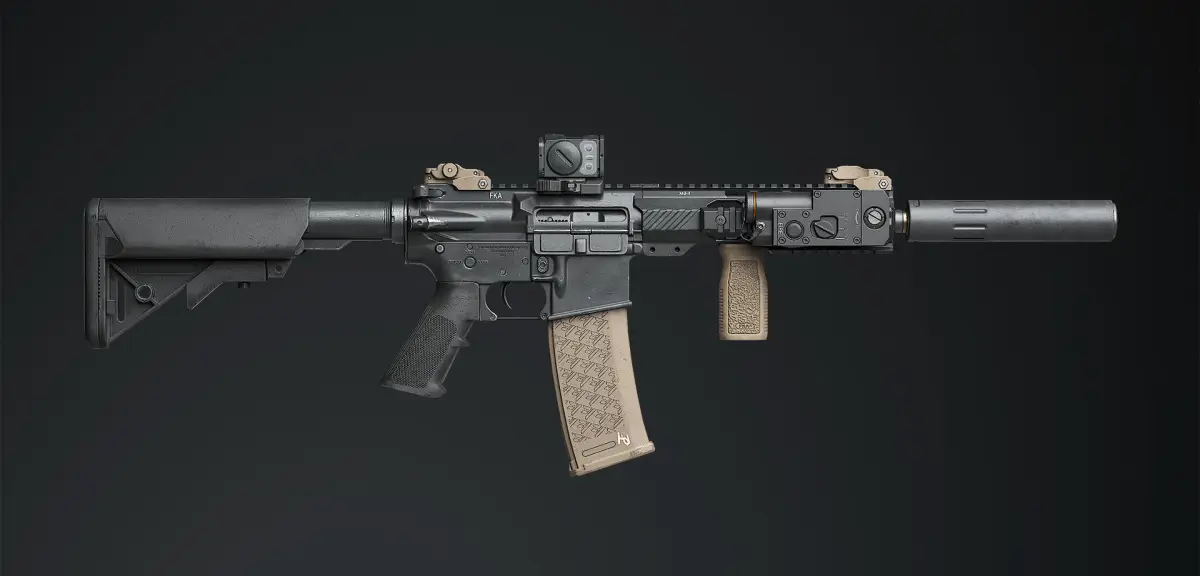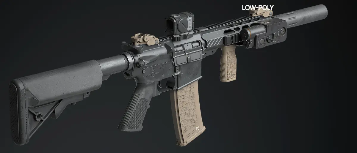 Game-Ready PBR(Metal-Rough)AR15. Textures in 4k for each asset. Model Ready for Animation.Model Equiped with Tactical PEQ CQBL-1.