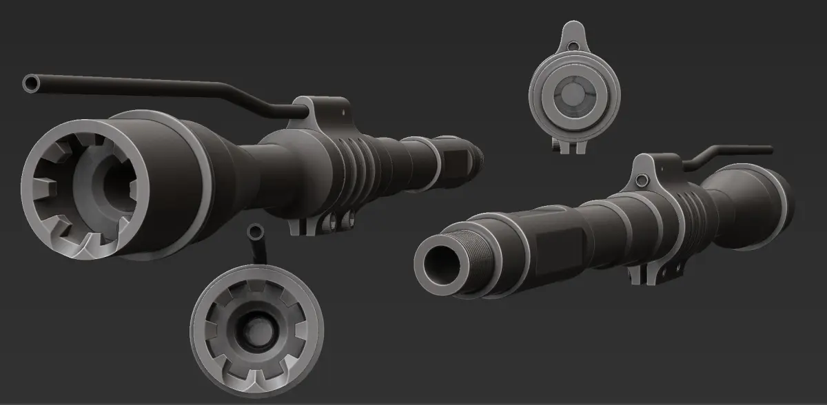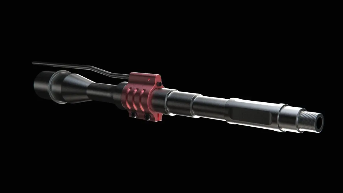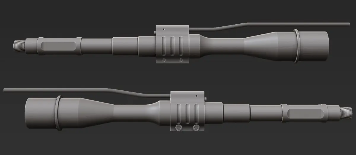 High-poly CG model of barrel and gas block for AR-15 and M4A1 receivers.