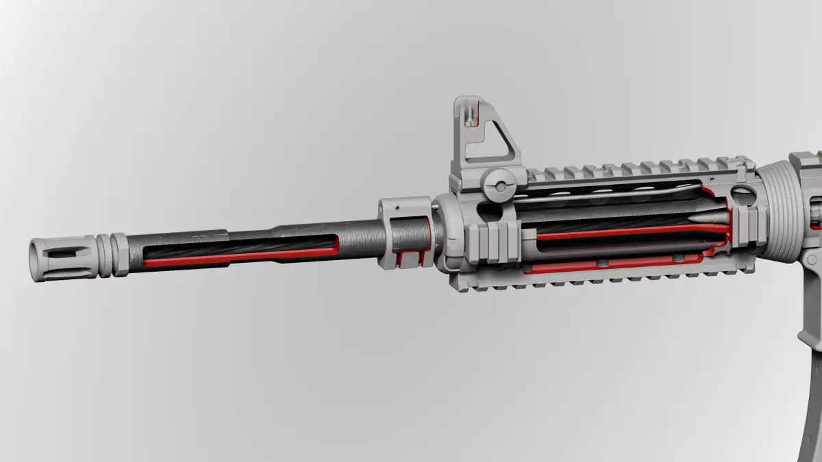 This assembly is unique due to its modularity, allowing parts to be replaced or integrated into other projects. Full compatibility with M4A1 components from other authors cannot be guaranteed, but it is fully compatible with my own components.