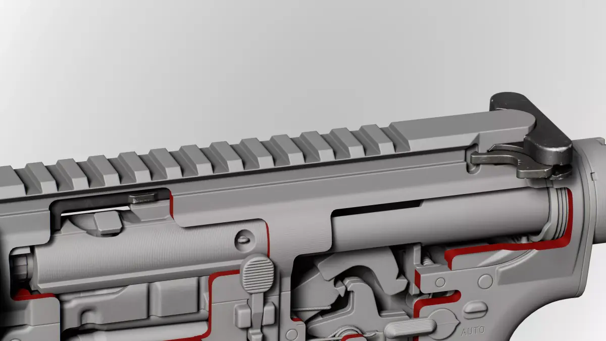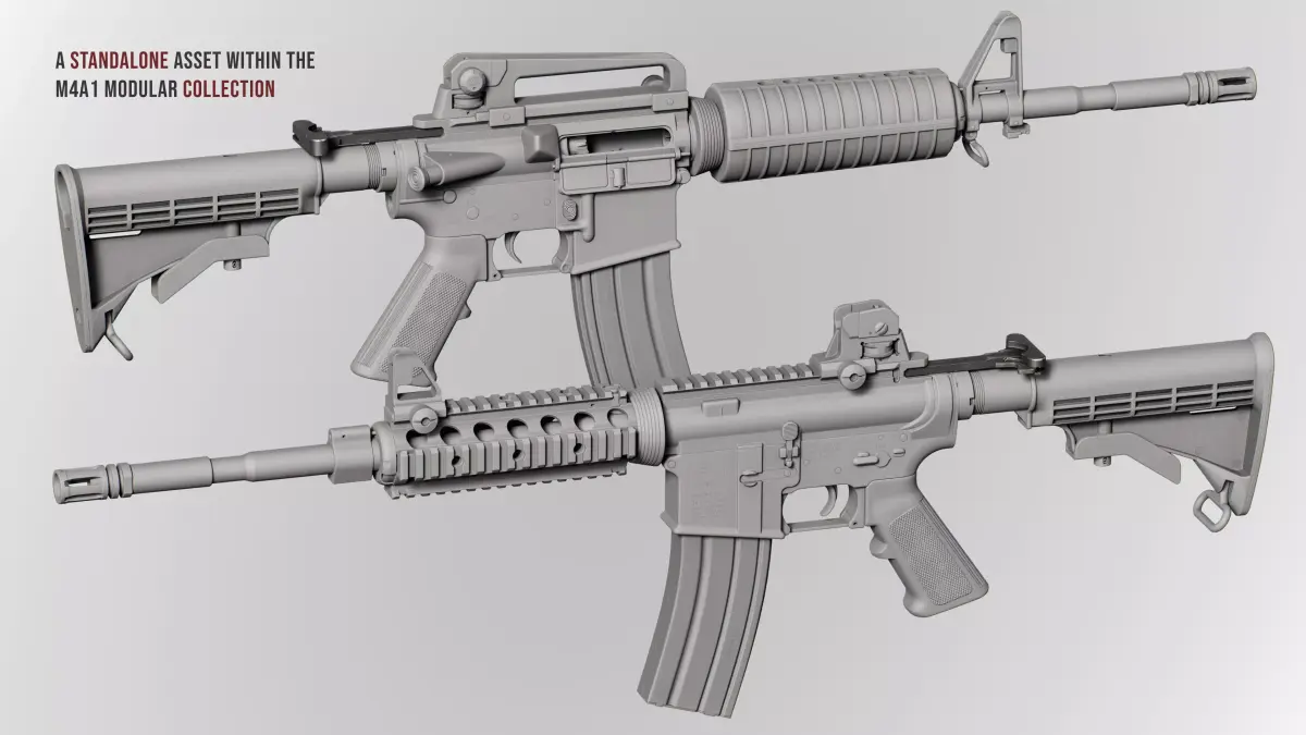 This assembly is unique due to its modularity, allowing parts to be replaced or integrated into other projects. Full compatibility with M4A1 components from other authors cannot be guaranteed, but it is fully compatible with my own components.