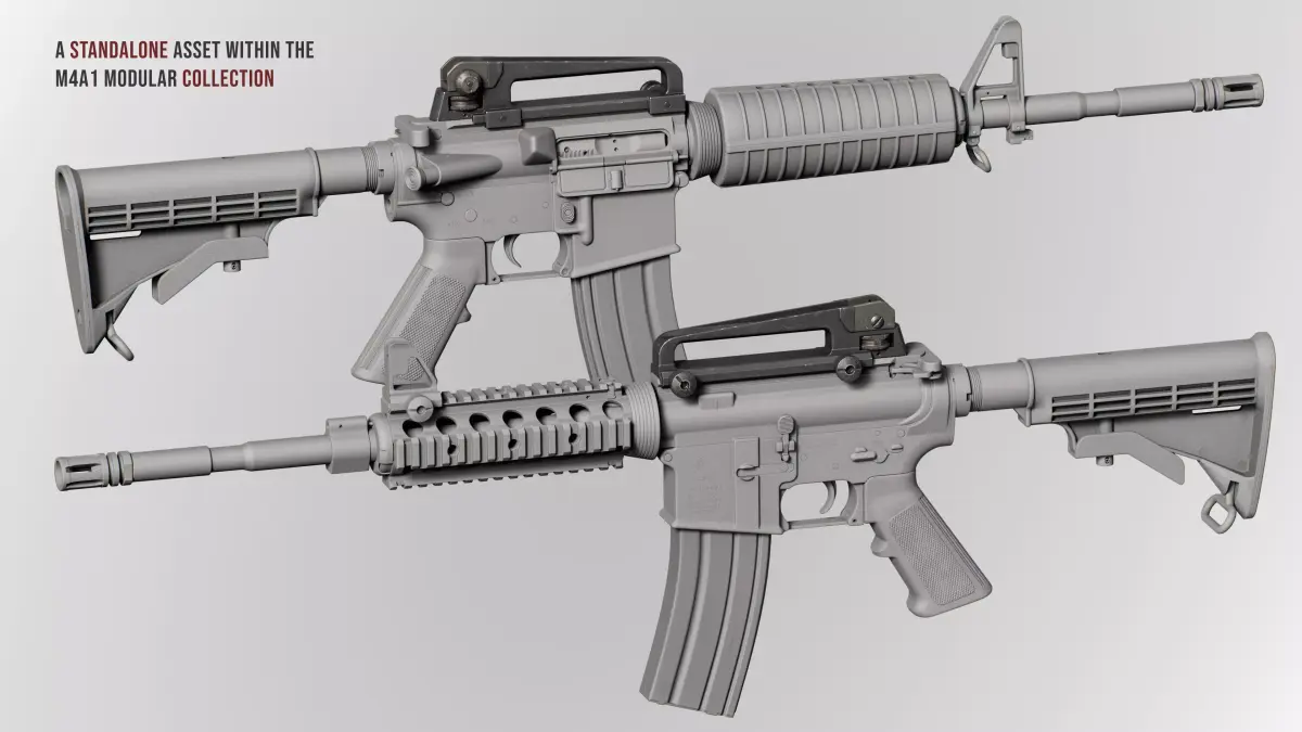 This assembly is unique due to its modularity, allowing parts to be replaced or integrated into other projects. Full compatibility with M4A1 components from other authors cannot be guaranteed, but it is fully compatible with my own components.