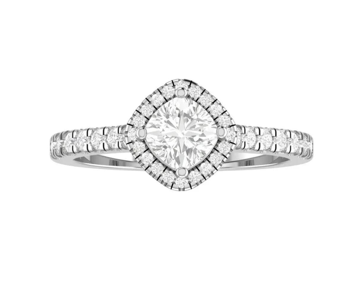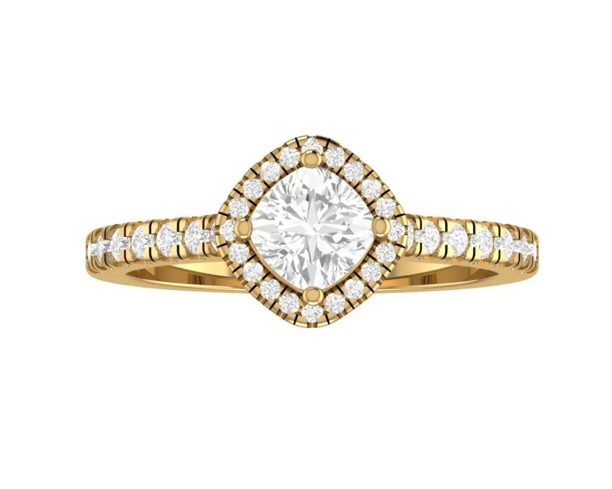 Cushion single Halo Ring ,Cathedral band Setting in micro Setting in diamonds