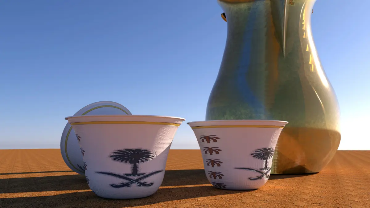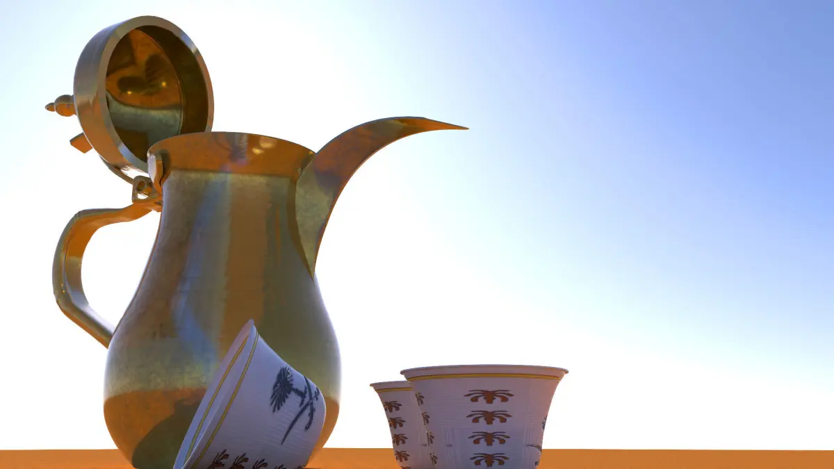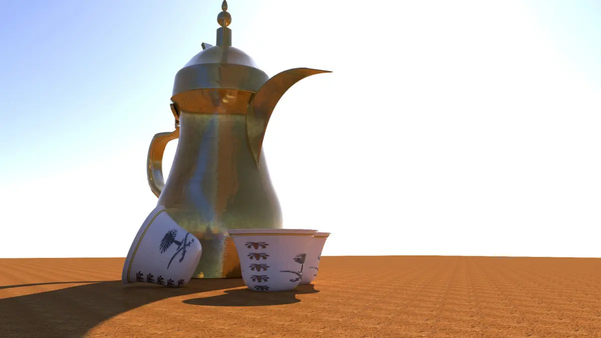 Hi Res CLEAN model of An Arabic coffee pot with Arabic coffee cups.