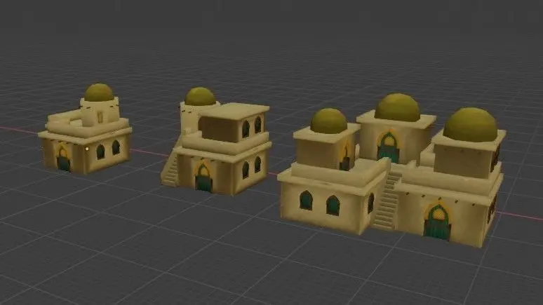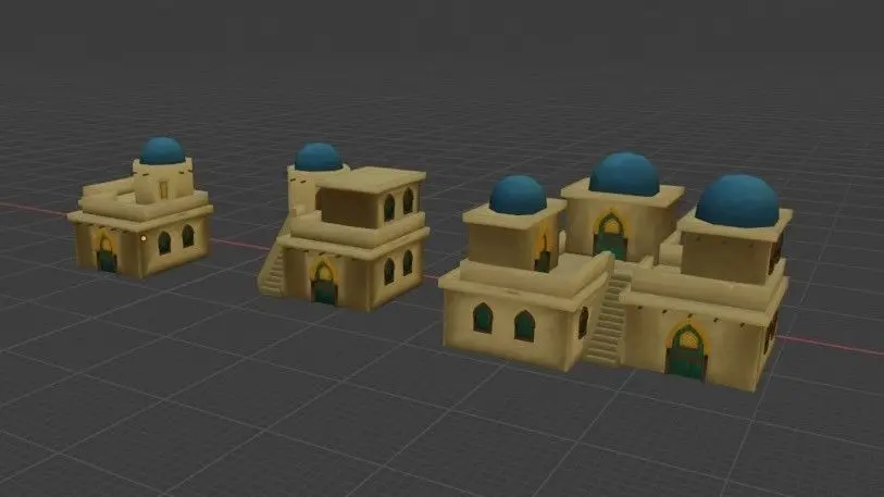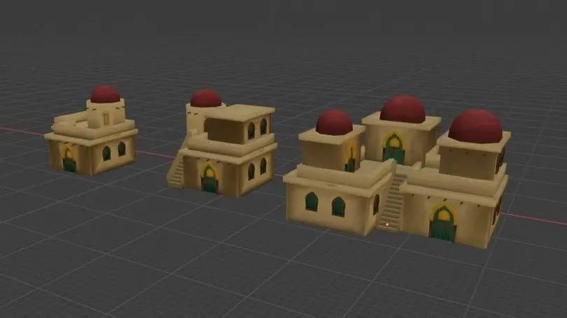 Arab, Middle Eastern style houses are suitable for setting up villages or cities in desert areas, game themes, or anything else. Can be used to decorate scenes. The building cannot be entered.