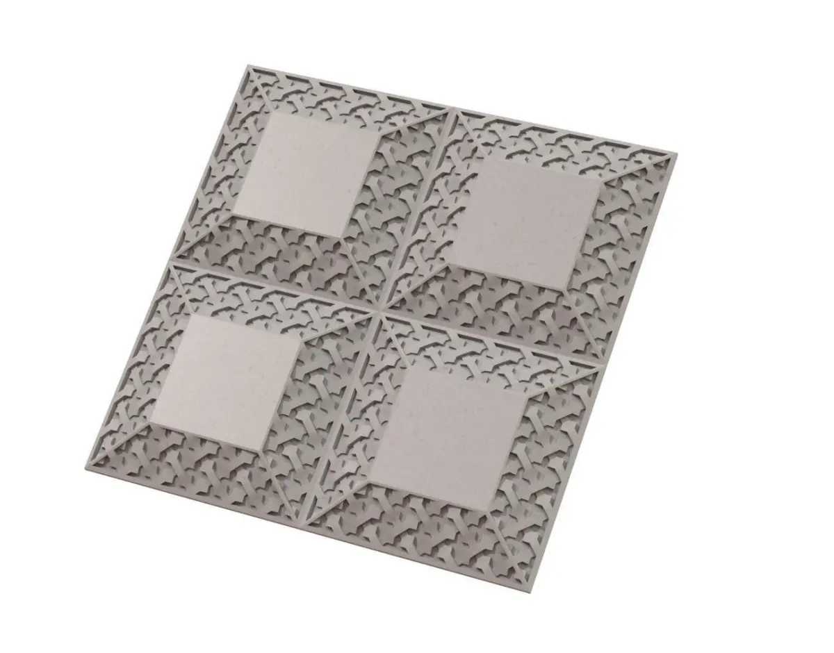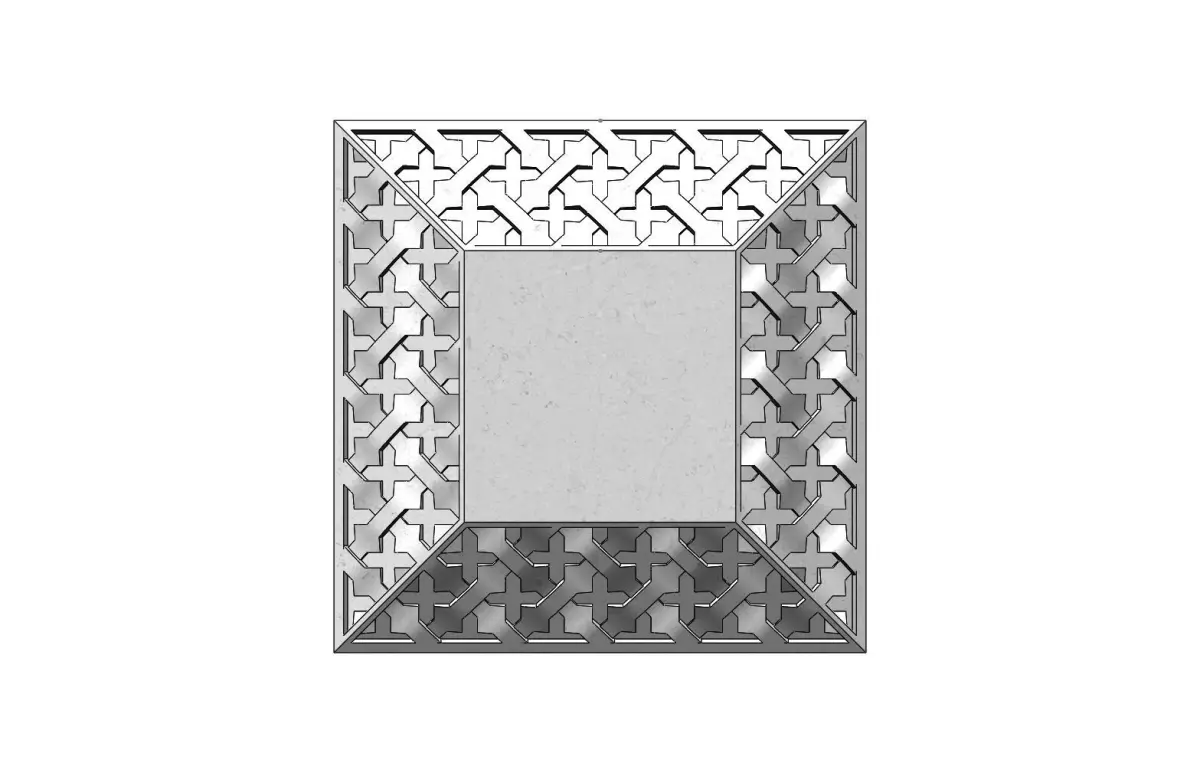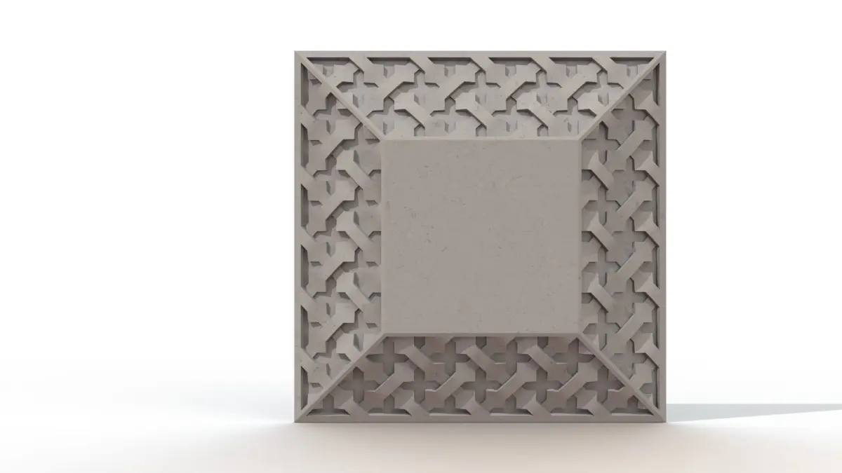 The pattern is perfectly carved on all the faces of the panel ensuring summetry.