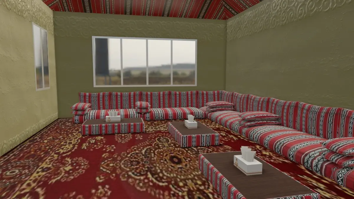 arabian villa + landscape + 2 tents ( Emirati majliss ) + toyota land cruiser 2021 fully textured + materialFromat : Fbx, Stl, Obj, blend
