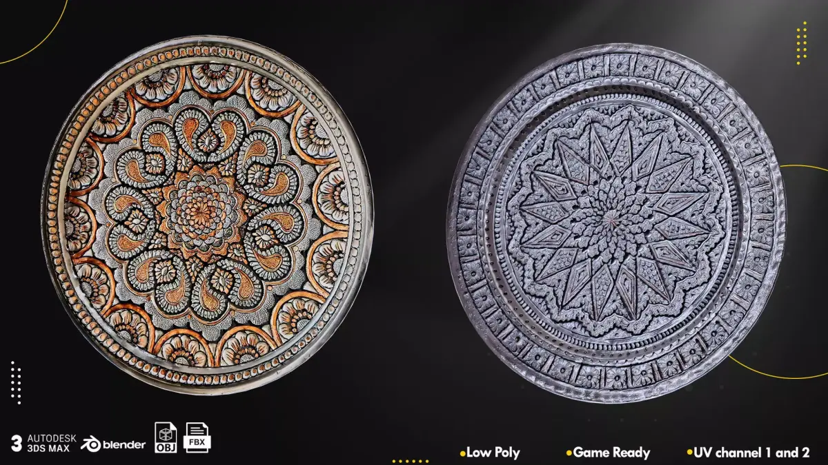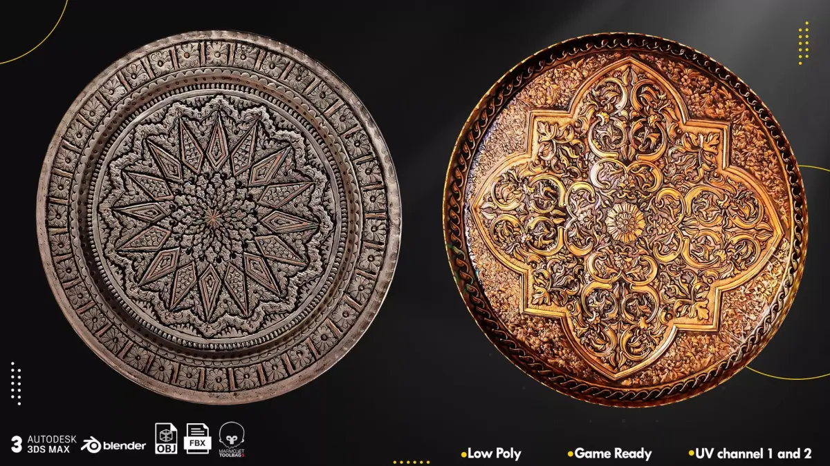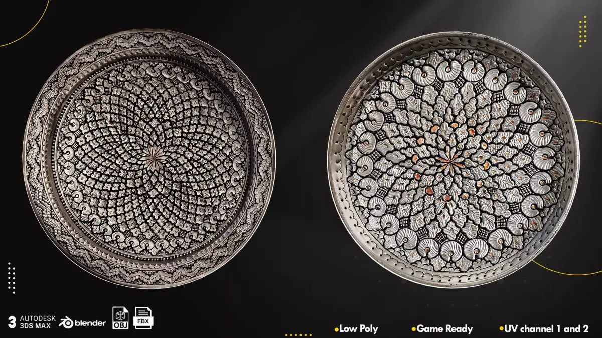 Bring the beauty of Middle Eastern art to your 3D projects with this exclusive collection of Arabic and Persian trays. Each model is crafted with fine geometric and floral patterns inspired by traditional metalwork and ceramic design.