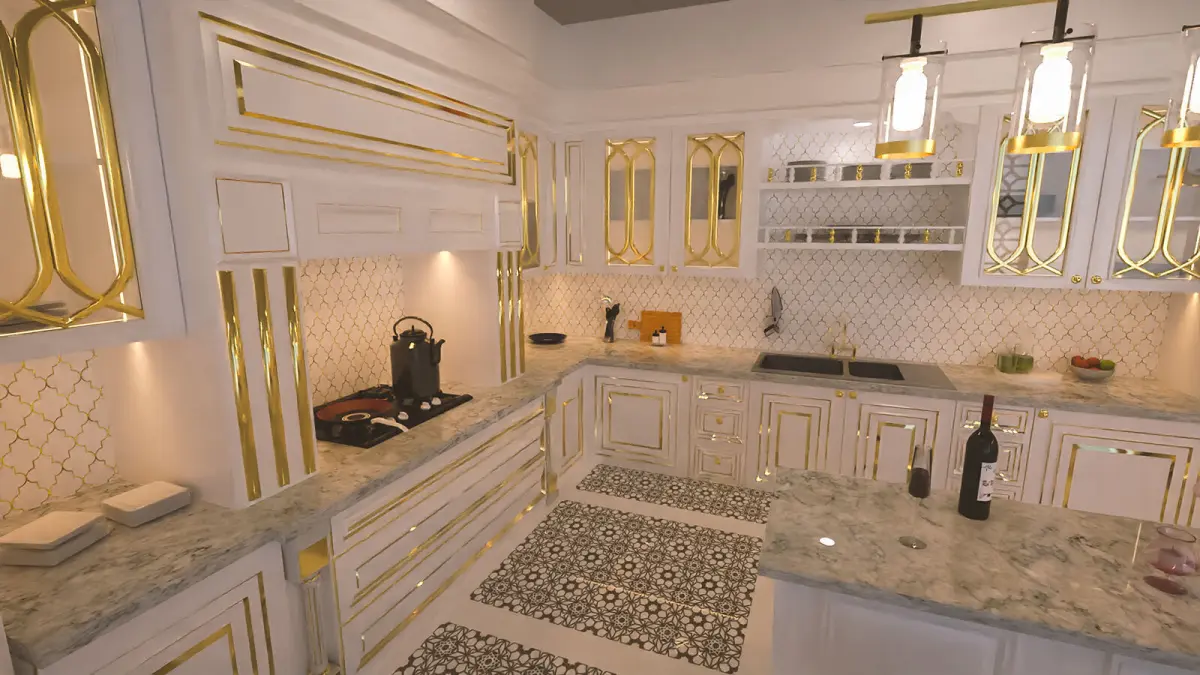 This is a simple but elegant representation of an Arabic Kitchen. It has Arabic finishing touches which means gold. Feel free to check out our other Arabic model representations.