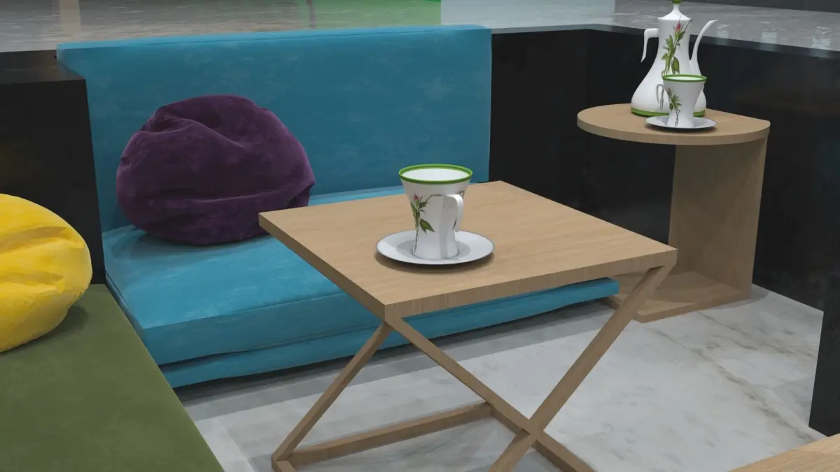 To further enhance the Arabian charm, we have added traditional elements such as an exquisite Arabic kettle and a selection of charming mugs. Indulge in delightful desserts that will tantalize your taste buds and savor the freshness of a bowl of seasonal fruits, adding a touch of liveliness to the place.