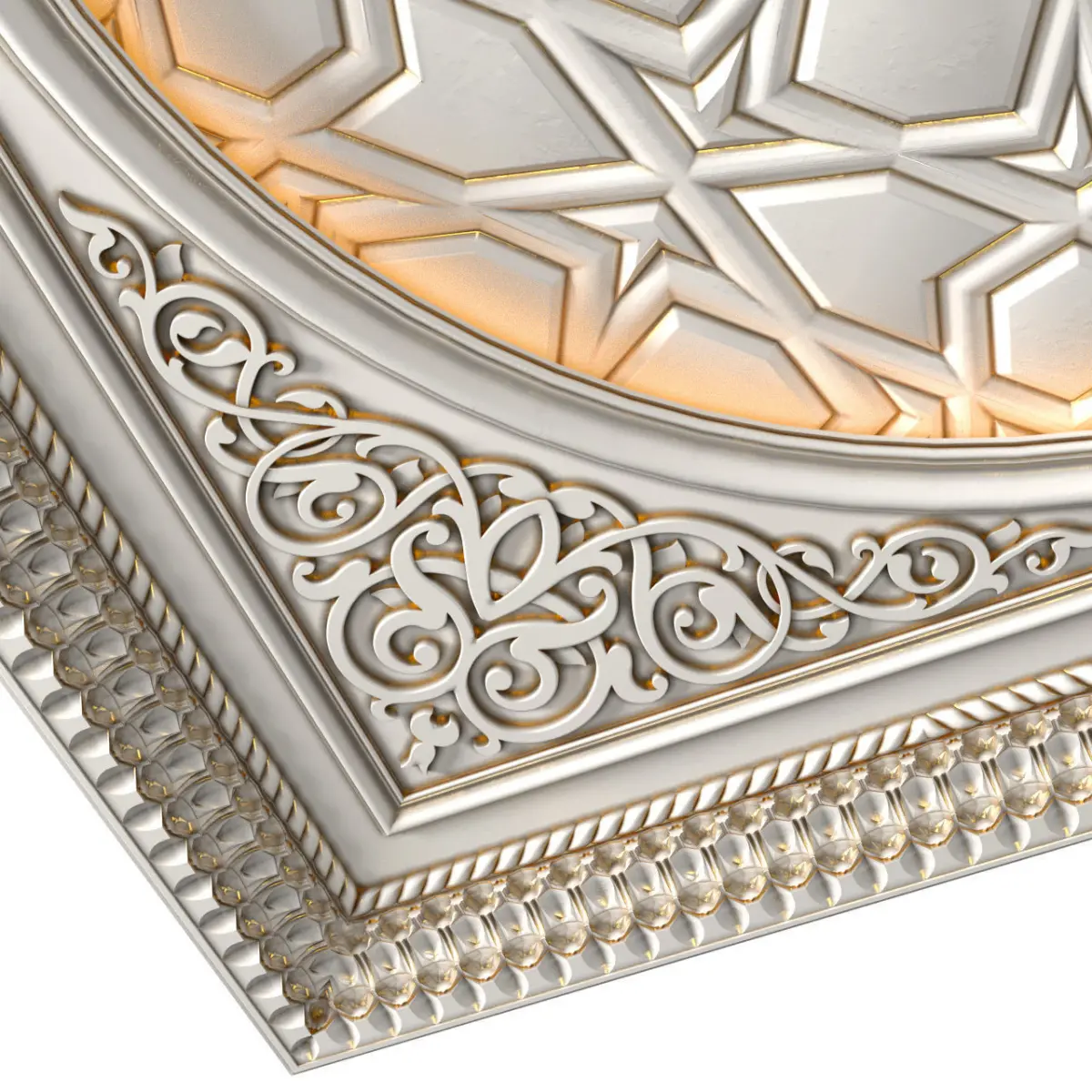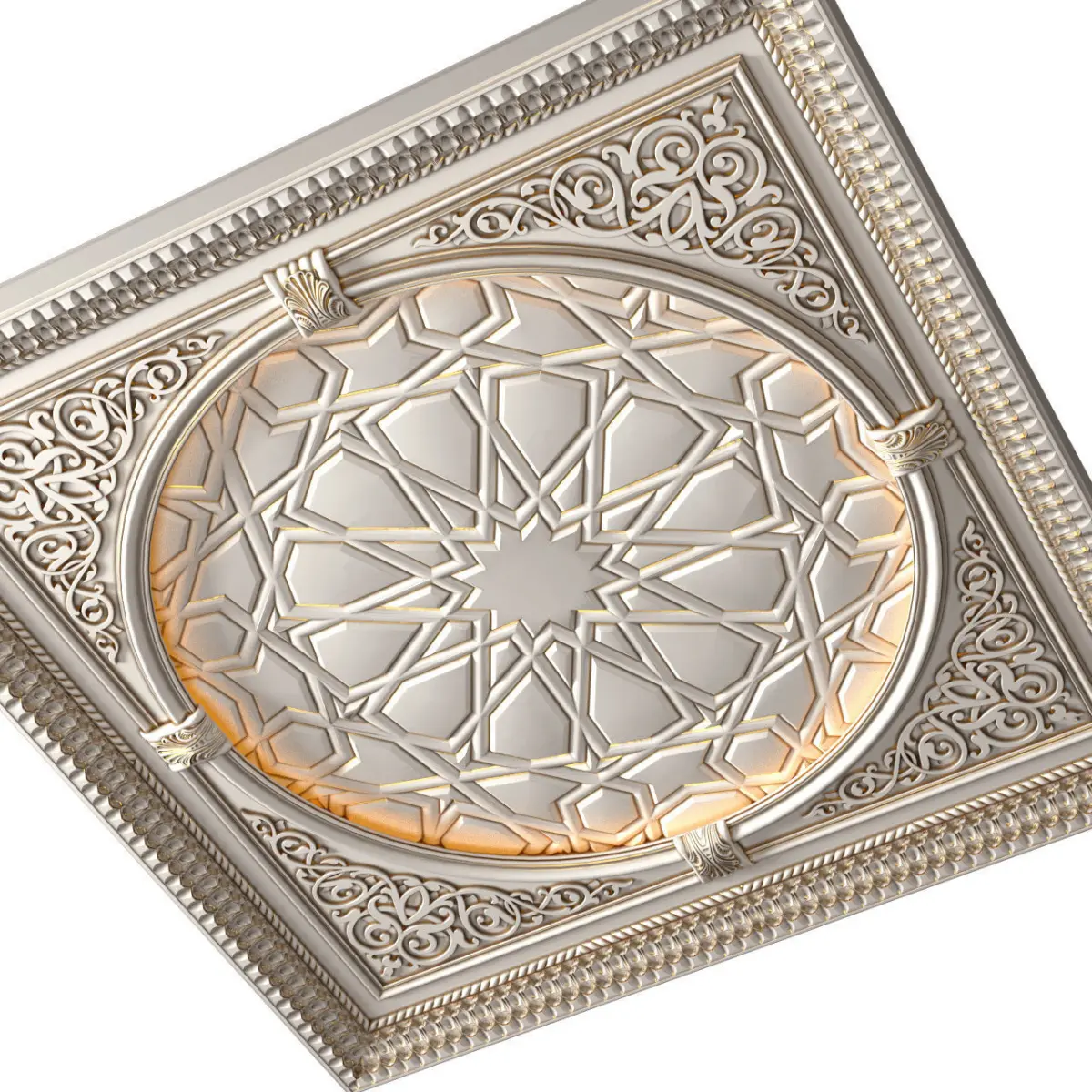 Oriental round white ceiling with gilded patina, lighting and stucco decorationArabic patternDecorative Arabic Ceiling coffers TileArabic Ceiling setCoffers CeilingOriental coffered illuminated ceilingIslamic