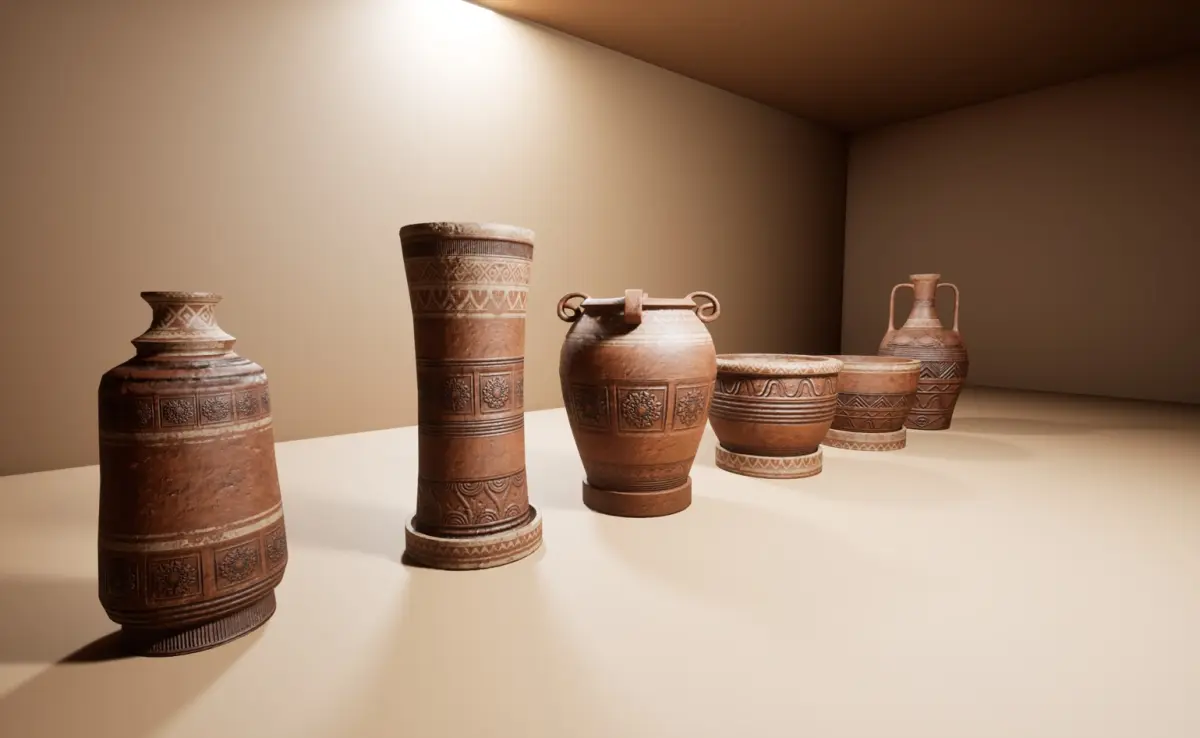 Dynamic Color Customization: Easily change pottery hues and shades with UV coordinates. Adjustable Patterns & Paintings: Fine-tune colors, scale, and opacity of traditional Arabic motifs to suit your design needs. High-Quality Trimsheet: Includes 4K textures for intricate surface details like cracks, edges, and patterns, optimized for all pottery shapes. Multiple Variants: A variety of pottery shapes (vases, jars, bowls) with consistent UV layouts, ready for seamless integration. Performance Optimized: Includes LODs and Nanite support for smooth gameplay.