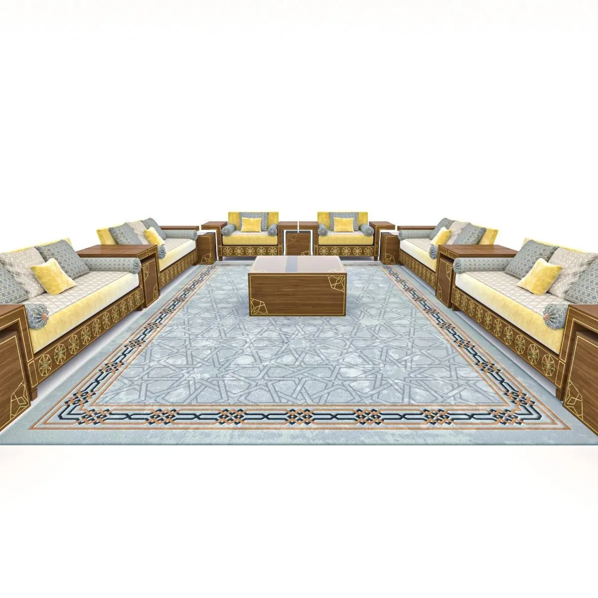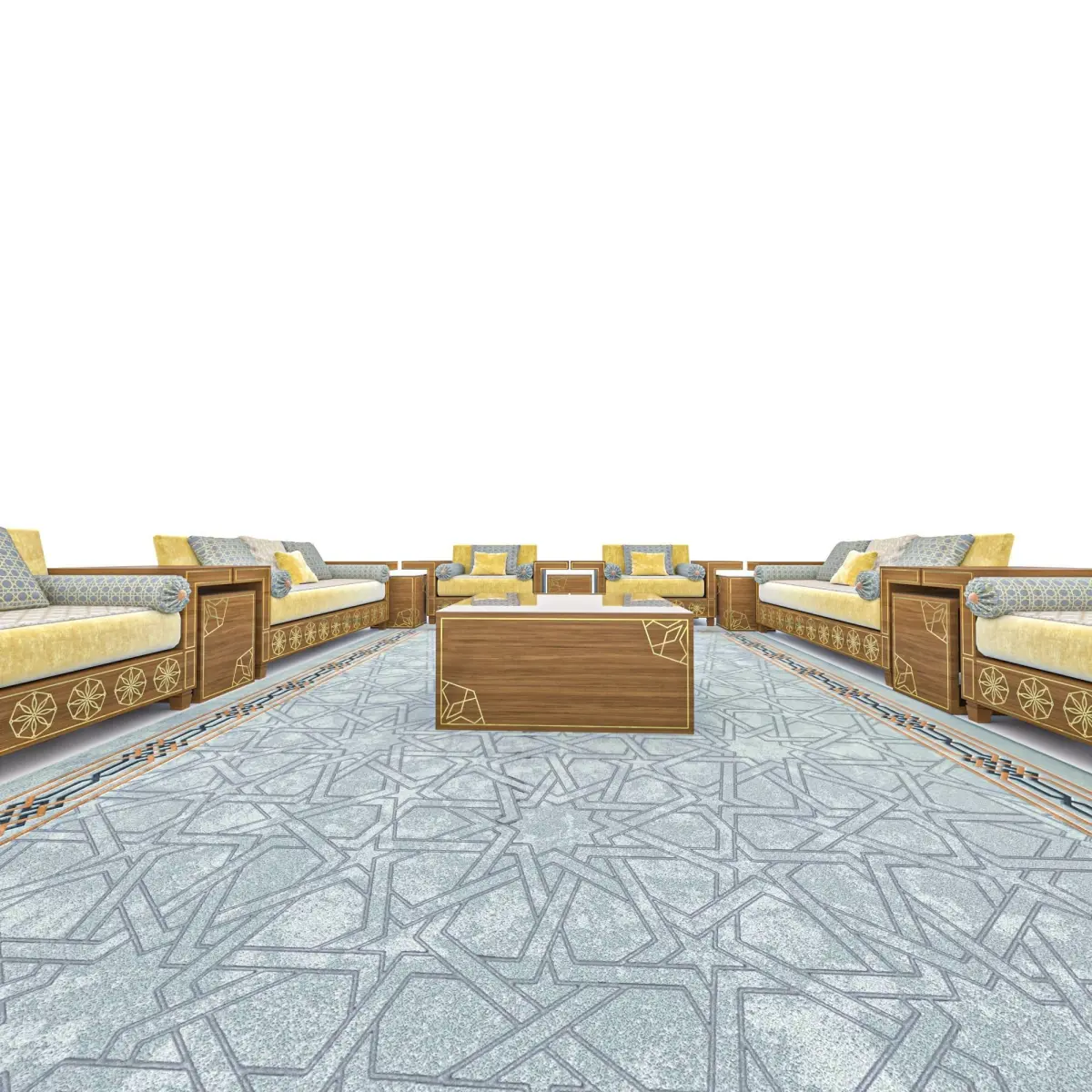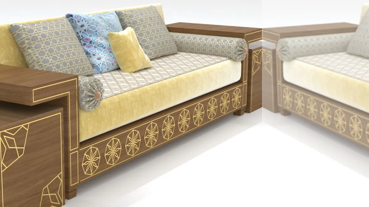 Arabic sofa design highly detailed polygonal model of the sofa in Moroccan style. shaded with advanced and complex vray materials. ready to renderingimportant notes: this model was made for 3ds max 2020 and the shaders as on the preview were set for Vray render only. If downloading formats other than .max you may have no proper materials - geometry only in some cases.
