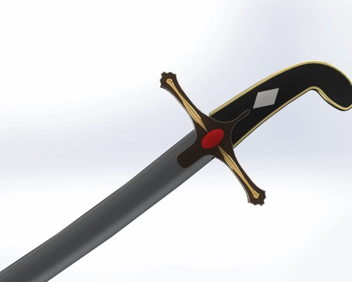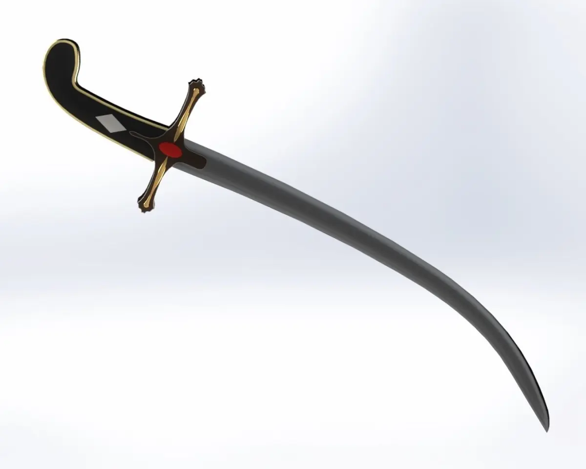 This is an Arabic sword made in the SolidWorks programThe handle of the sapphire sword is worked and gilded around itMaterial of tanning handleOf course, all this can be changed