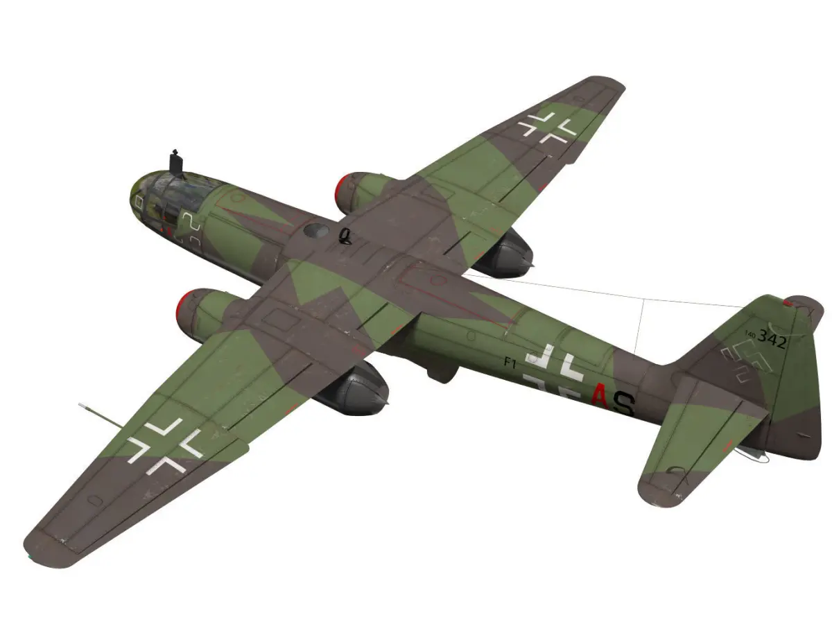 The Arado Ar234 Blitz is a jet bomber used by the Luftwaffe at the end of WW2.The model is type B-2.The model's Landing Gear is divided into parts for flight and landing conditions.(They are in the folder gopen.gclose).The texture of the original data may have changed due to export.Parts of moving parts are separated. However, please note that the rig is not reflected.This model is not intended for use in games or other low-polygon applications.This model is not for 3D printing.Please be careful when purchasing.
