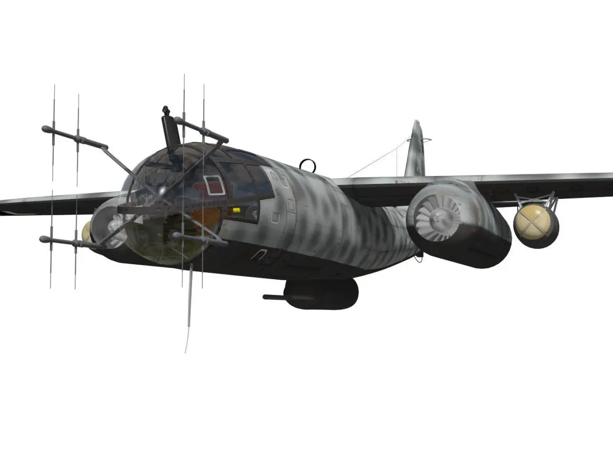 The Arado Ar234 Blitz is a jet bomber used by the Luftwaffe at the end of WW2.The model is a night fighter type Type B-2N.The model's Landing Gear is divided into parts for flight and landing conditions.(They are in the folder gopen.gclose).The texture of the original data may have changed due to export.Parts of moving parts are separated. However, please note that the rig is not reflected.This model is not intended for use in games or other low-polygon applications.This model is not for 3D printing.Please be careful when purchasing.