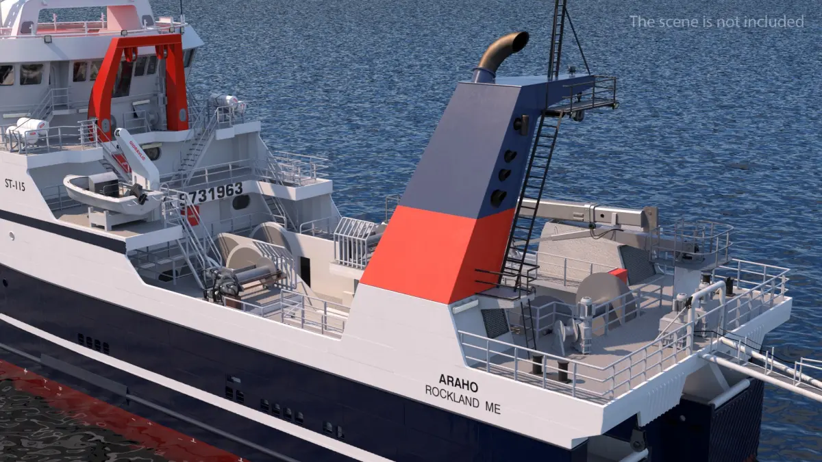 ARAHO Freezer Processor Factory Trawler is a high quality, photo real 3d model that will enhance detail and realism to any of your rendering projects. The model has a fully textured, detailed design that allows for close-up renders, and was originally modeled in 3ds Max 2012 and rendered with V-Ray. Renders have no postprocessing.