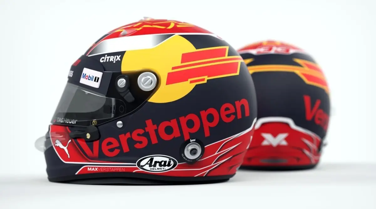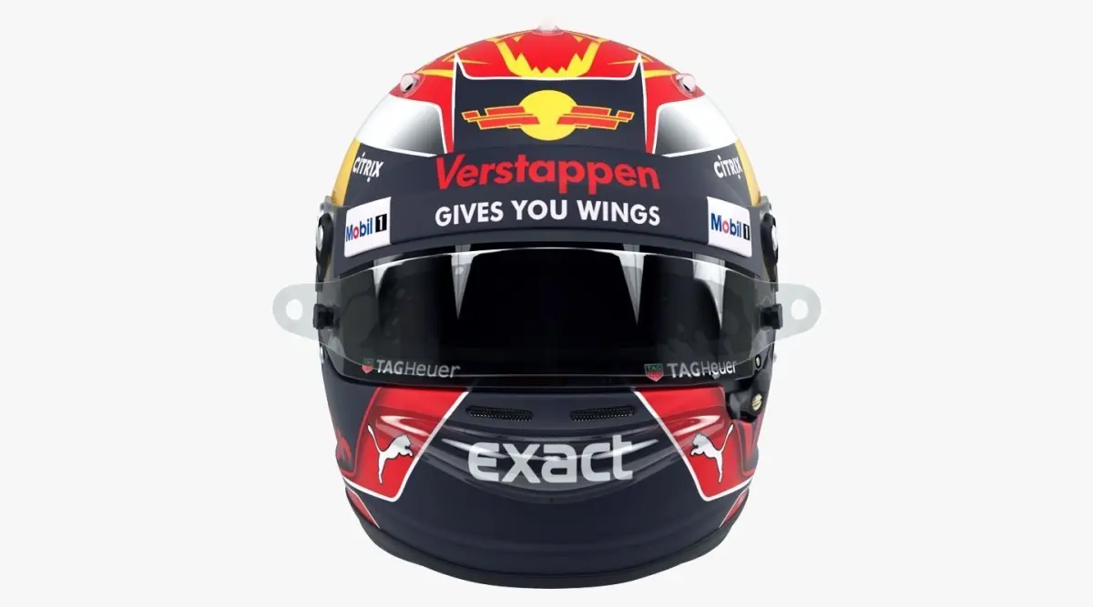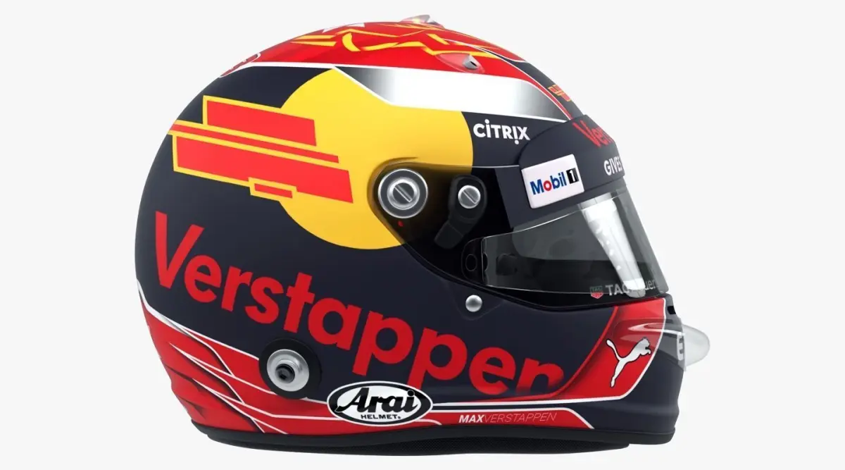 High-poly, ultra-realistic racing helmet model in 2017 style. (There is no rear spoiler on the real helmet, but it is INCLUDED in the scene.)
