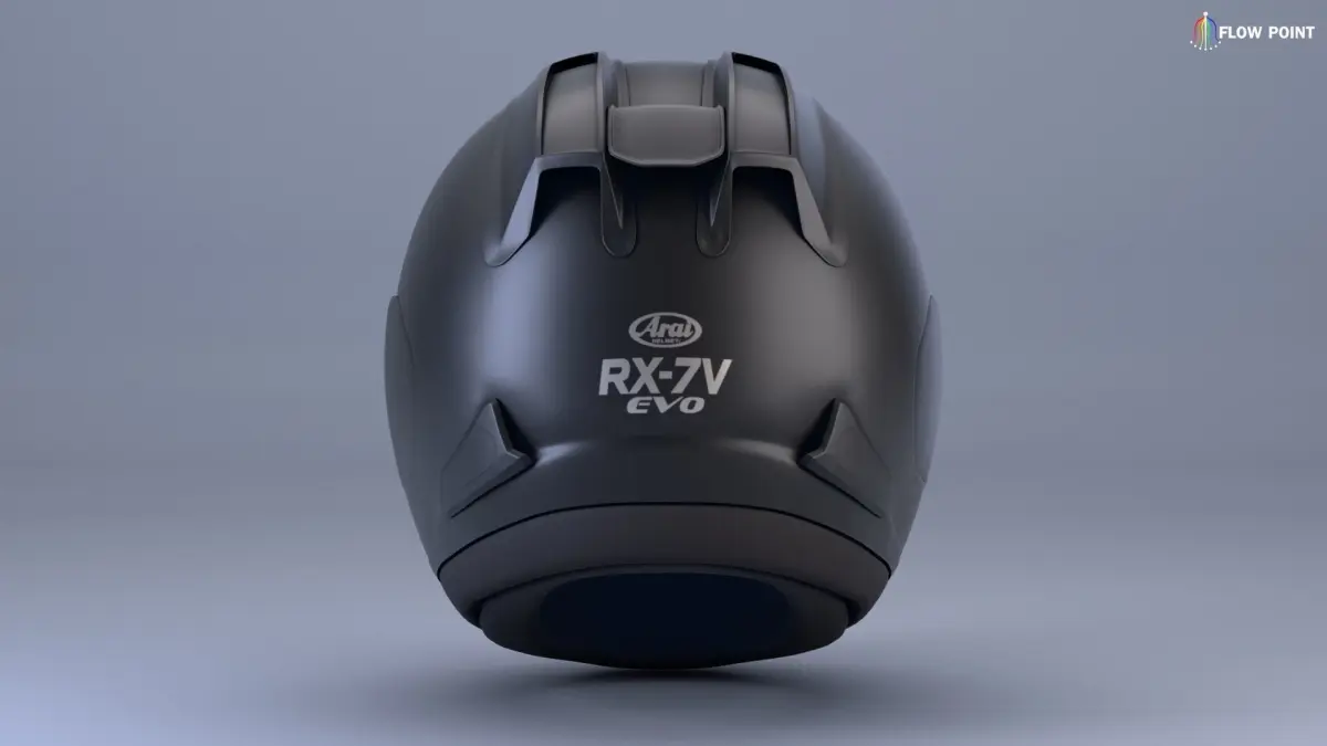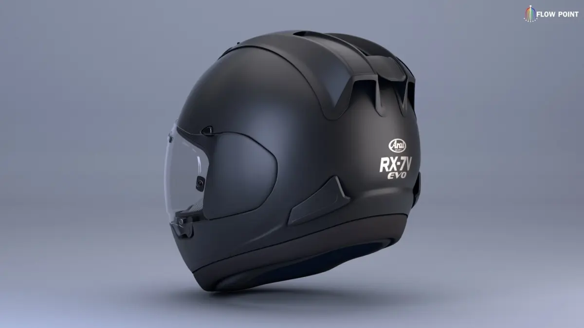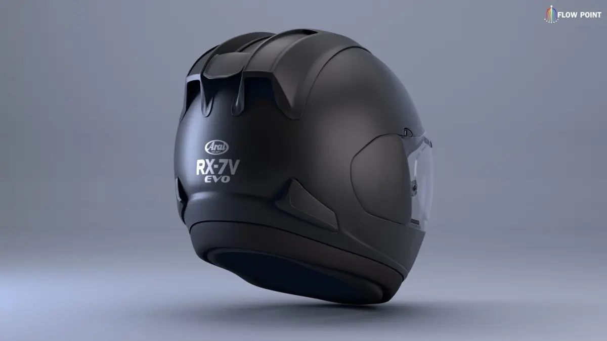 Arai-RX-7V-Evo racing style helmet 3D model with high detail, and both exterior and interior realism. All objects are arranged and named in an orderly manner. Bonus Free rigging for the open front windshield.