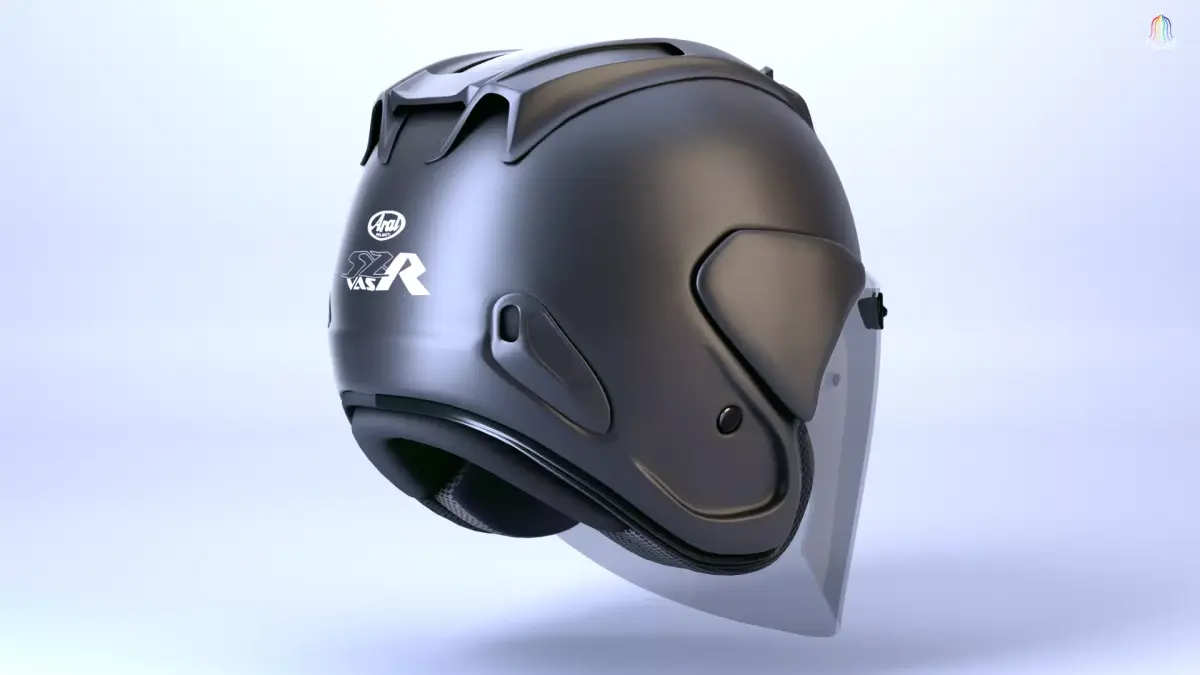 Arai SZR helmet 3D model with high detail, and realism both exterior and interior. All objects are arranged and named in an orderly manner. Bonus Free rigging for the open front windshield.