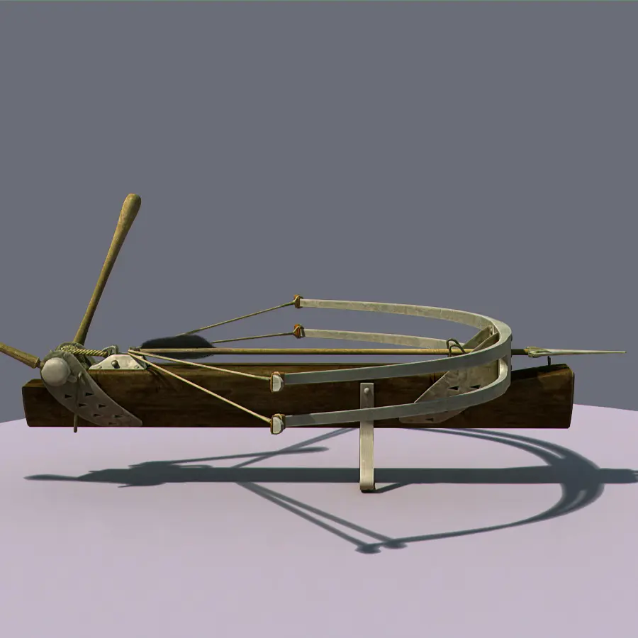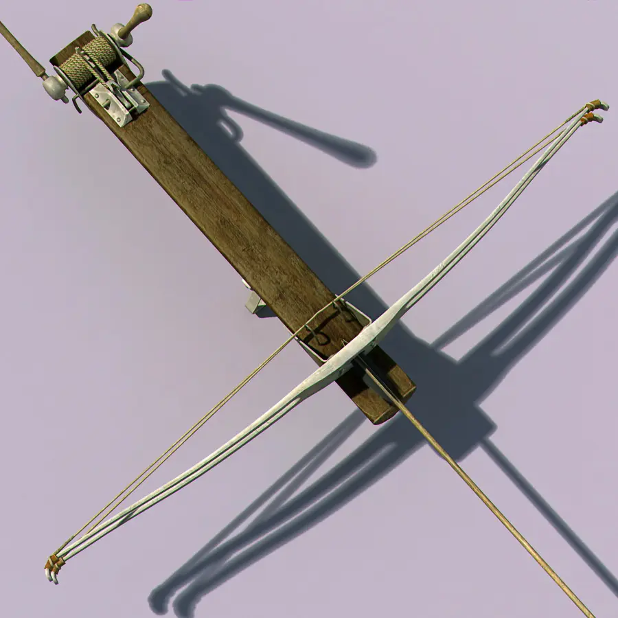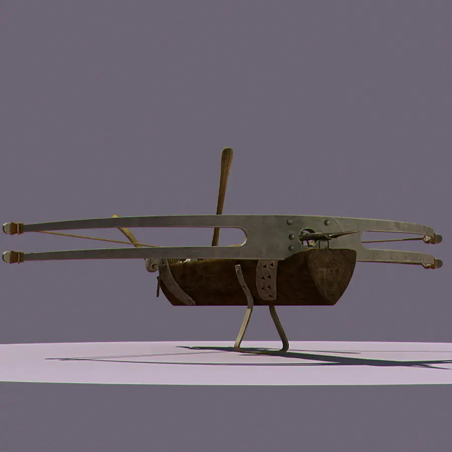 Large medieval bow/arbalet with scythe expander arrows. Utilised by two men in point defence and fortifications.