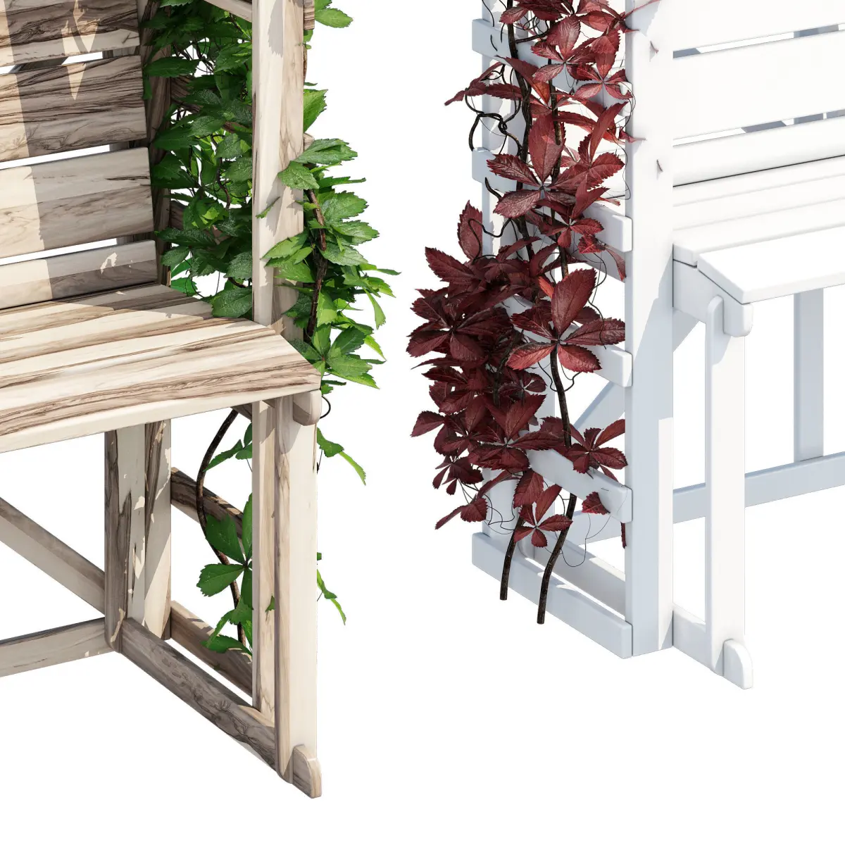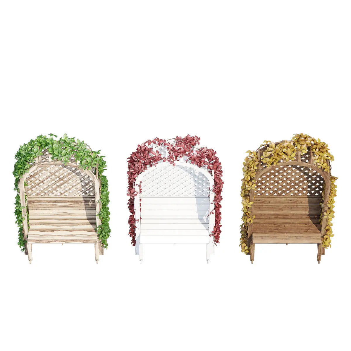 English Cottage Garden Wooden Arbor with Built-in Bench Trellis Backdrop