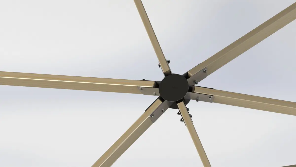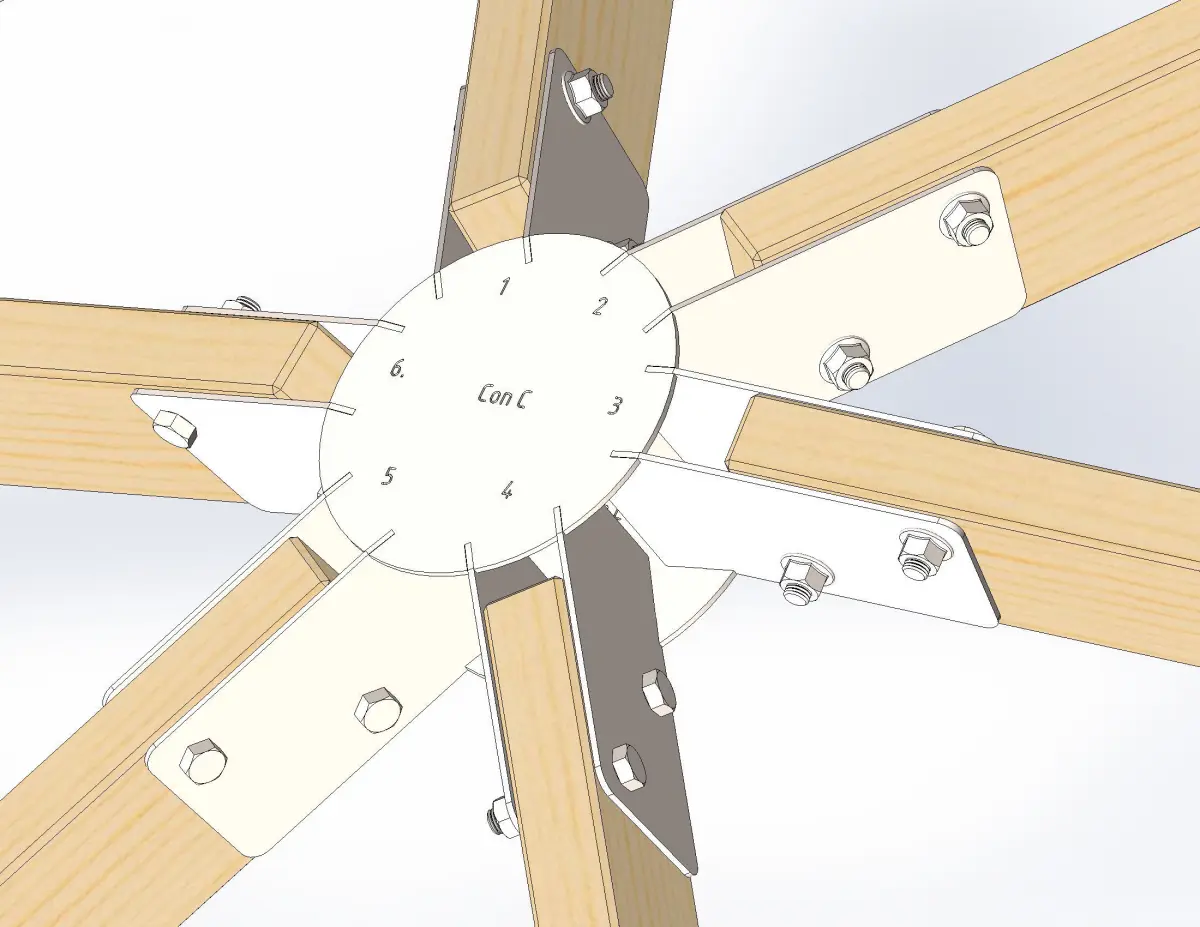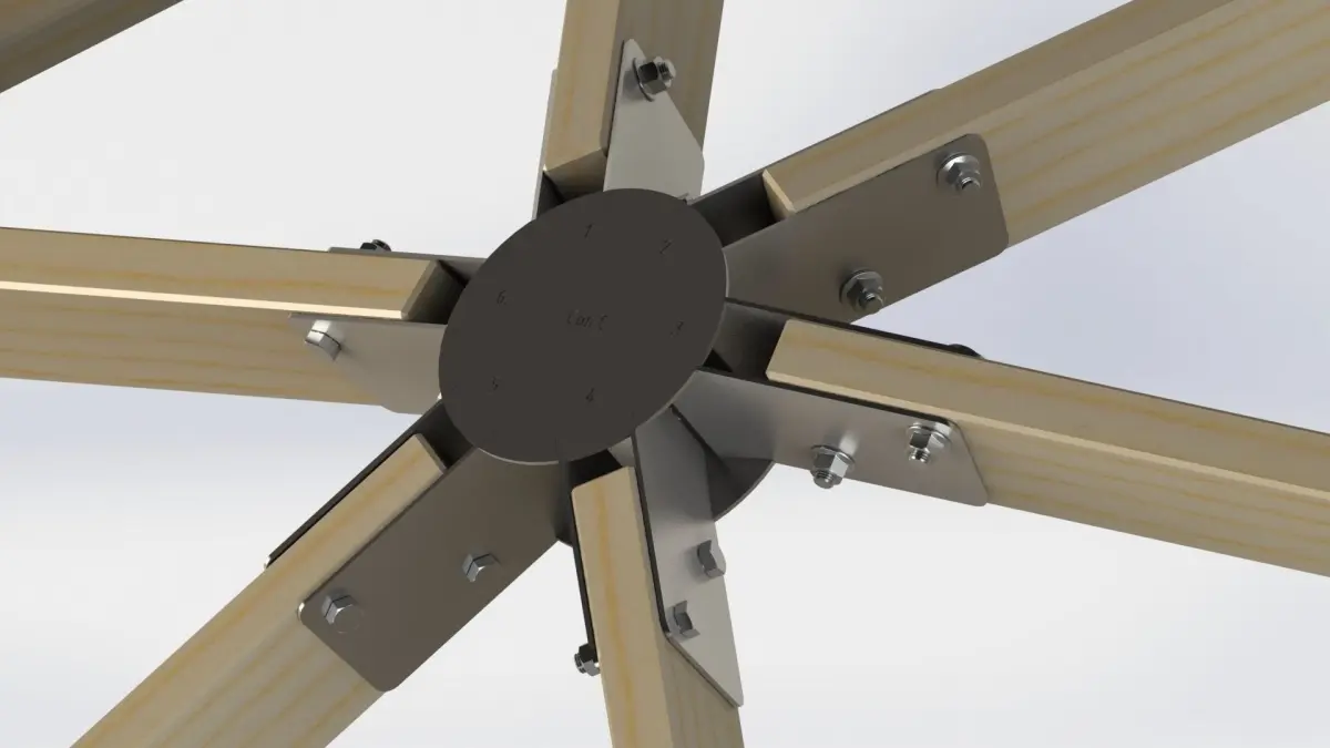 Arbour frame 7x7x4.2m wood beams and steel connectors.