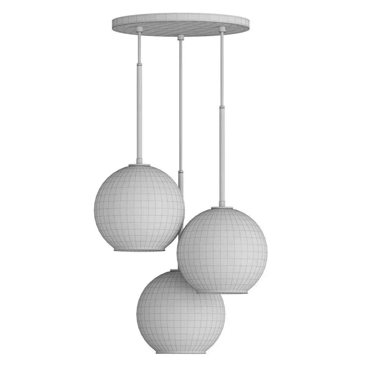 The Arc Chandelier is designed to be a centerpiece, offering 360-degree illumination and a compelling artistic focal point. The opalescent glass spheres provide a soft, diffused light, making it ideal for ambient lighting in large rooms, foyers, or over dining tables. The model is presented in two striking metal finishes: a sleek matte black and a luxurious polished brass/gold, highlighting its versatility to fit high-end contemporary and mid-century modern interiors. The included wireframe image (103.jpg) shows the model's clean, organized geometry, which is excellent for close-up renders and ensures high quality in various 3D applications.