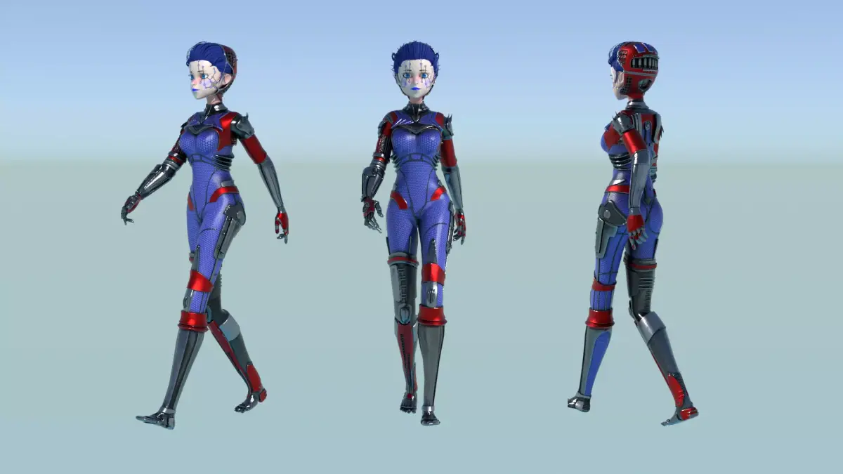 A stylized cyberpunk-inspired combat pack featuring two asymmetric robotic girls (Red & Blue variants) with high-tech designs, multiple shader options, and fully rigged combat animations. Perfect for games, cinematics, and stylized renders.