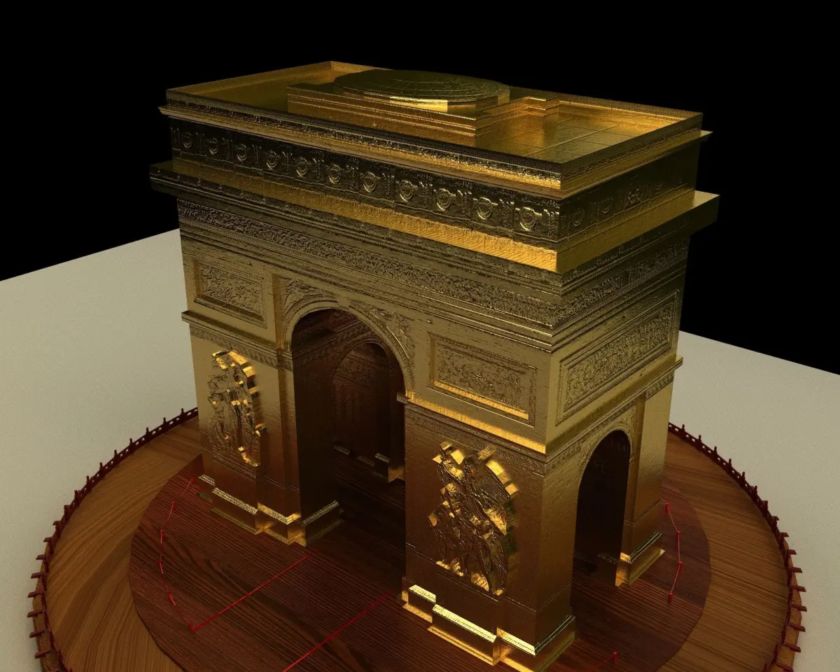 Arc de Triomphe gold sculpture carving crystal 3D models created in 3D Max. All scene and texture map are included in Zip file. Final images rendered with Vray.Available files: gold_france_arc_de_triomphe zip file