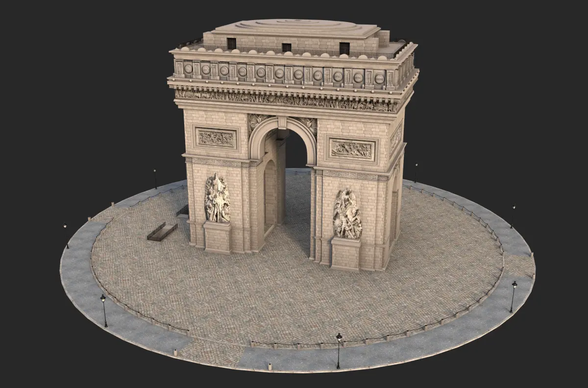 The model was originally modeled in Autodesk Maya, textured and rendered using Arnold Render.Modeled using polygons.With materials and textures.All the objects parent and group correctly.The file called ' render ' is to render like the first imatge with Arnold Render. For best results add a render occlusion on it.Formats mb,, fbx, Blender, Obj and 3dmax.These formats with basic materials and textures.Reduce nature( grass, trees etc----) if you want less polygons.