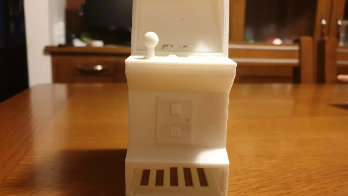 Hi, this is my latest creation .. mini arcade cabinet to hold the Raspberry Pi 3B / B +. The structure of the main body is made up of two parts. The other files are the marquees, the coin door, the board (full or with separate joysticks and buttons) and the monitor glass. In the version I have prepared, the monitor glass and the marquees are printed in a transparent sheet and inside I put a small LED to give a cooler effect when the lights are off (small video in the preview). The model also includes support for this LED inside. In the package, in addition to the 3D printing files there are also the side graphics, the screen and the marquees (Bubble Bobble version as per preview).