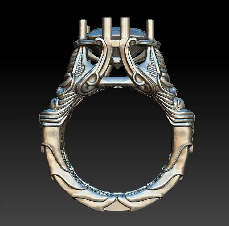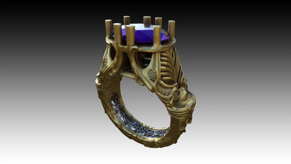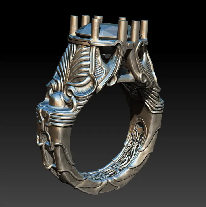 The Arcane Mechanism Ring is a masterpiece of intricate craftsmanship, blending the elegance of organic forms with the precision of mechanical artistry. This striking design features an elaborate network of carved details, reminiscent of ancient clockwork fused with mystic symbolism. At its heart, a commanding gemstone radiates brilliance, encased within ornate metalwork that enhances its depth and intensity.Forged for those who appreciate both mystery and precision, this ring exudes an aura of enigmatic sophistication—ideal for collectors, visionaries, and those drawn to the fusion of art and engineering. Whether worn as a statement piece or a symbolic artefact, the Arcane Mechanism Ring captures the essence of timeless ingenuity. We have included an OBJ file on this purchase with maps and texturesWe have this ring in size 07, meaning 15.5mm round shank, and it requires an oval gemstone of 12*6*9mm. The ring has 2 additional assemblage parts that need to be suited to the main piece after casting (they can be in a different metal)