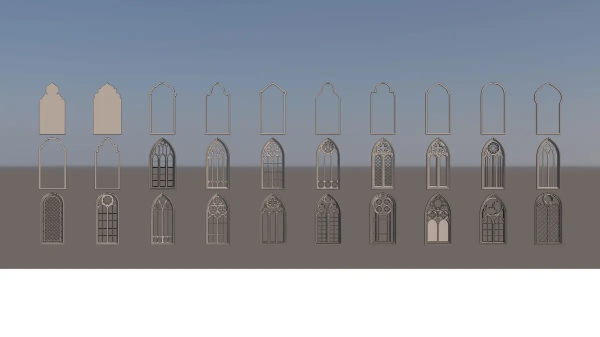 Gothic Arches: Pointed and sharp, these arches draw inspiration from medieval cathedrals, with intricate details that convey verticality and grace.