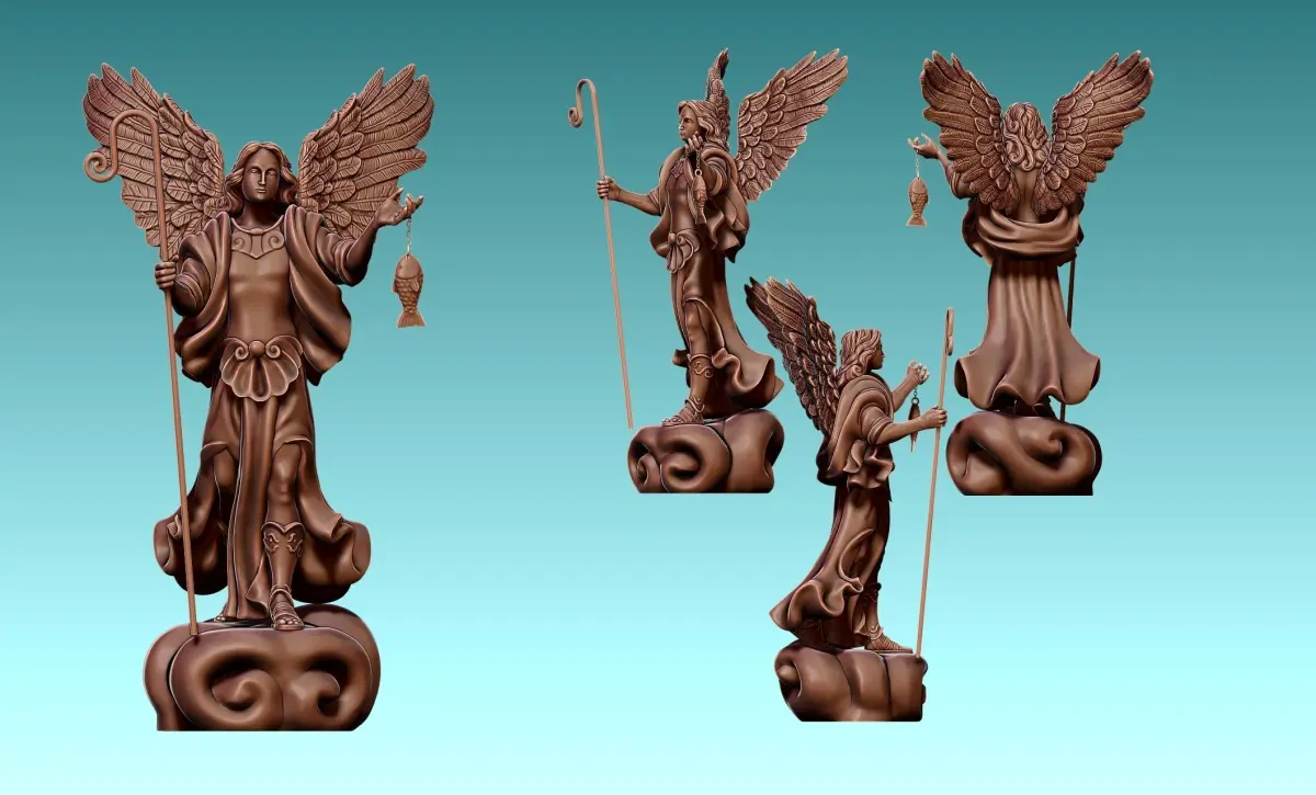 Raphael, the healer of God. Another work done in collaboration with a colleague for his carpentry. Originally designed for CNC Routing Machines and 3D Printers. Based on classic designs of Catholic Art. Made in the classic and genuine pose for which we know these powerful beings.