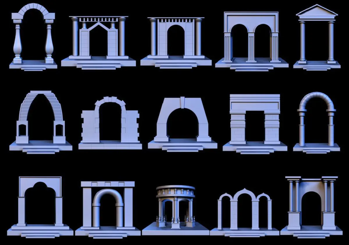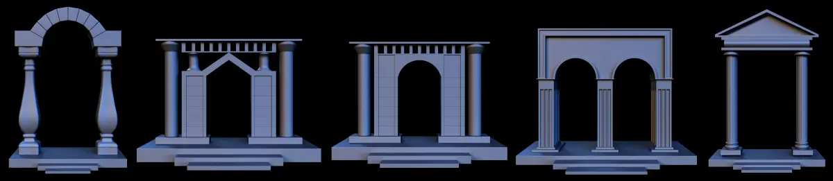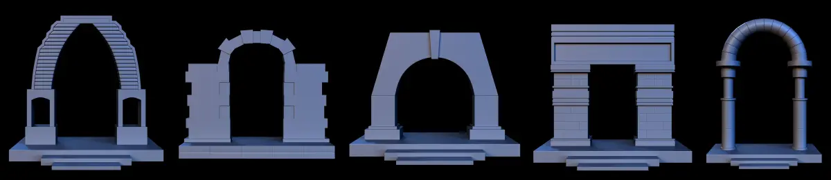 Using a base mesh is one of the best things to do to speed things up . This volume includes 16 Arch Gate 3d object that are available as a base mesh (no uvs and no texture).