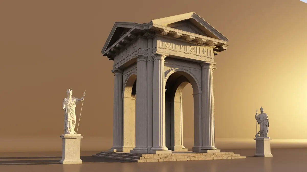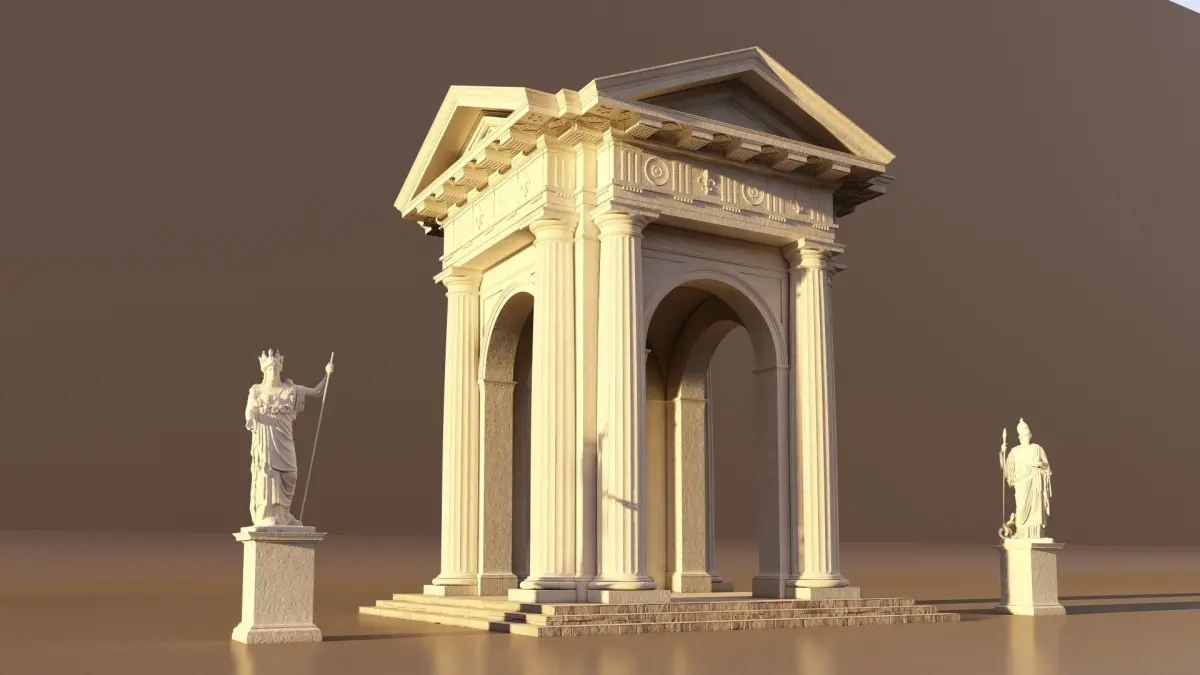 Fully detailed Arca Gazebo in Doric mutulary column with 3/4 with and entablature** Doric Order** on Vignola. Fluting Columnportico