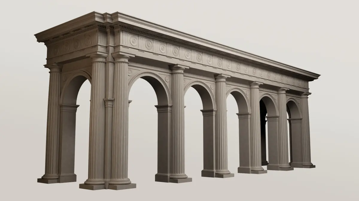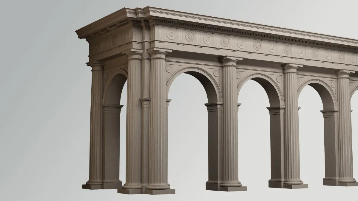 Fully detailed Arcade in Doric Denticulated column with 3/4 with pedestal and entablature** Doric Order** on Vignola. + fluting Column *