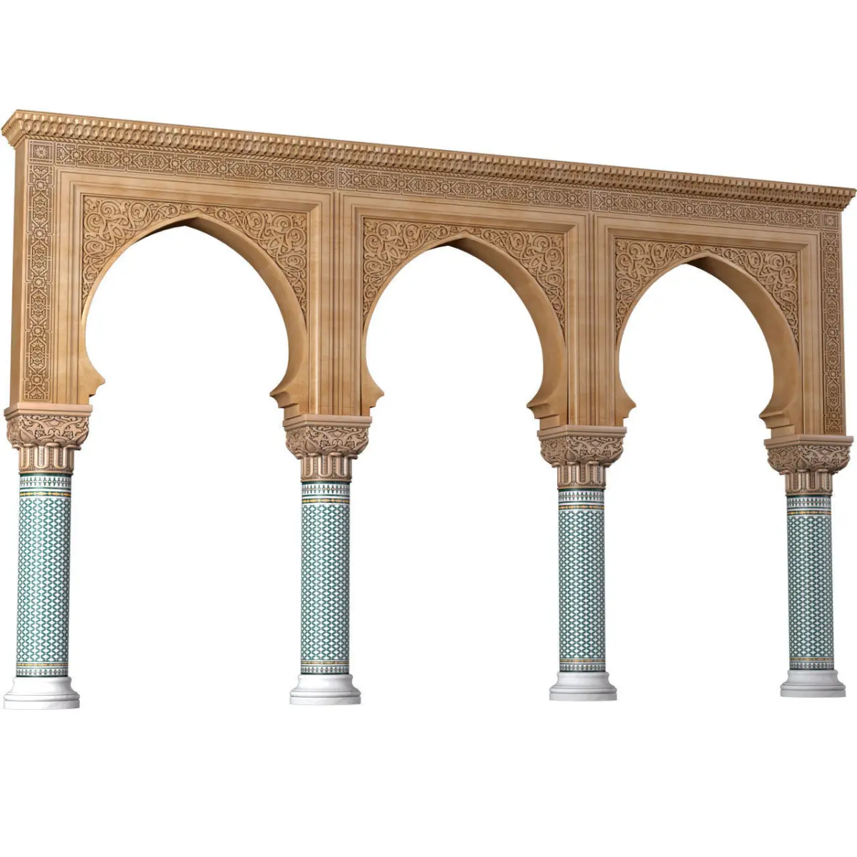 Classical Arabic architecture Classic oriental architecture Moroccan style Oriental pattern Stucco in Arabic style Arabic decorative panel Decorative plaster Oriental stucco cornice ornamental islamic arches oriental wall panel arabian arch moroccan arc Classic Porch.Main Arch in classic style Arched Door Opening Entry way Arcade, Arc,Archway Entrance to the house Moroccan design Muslim decor