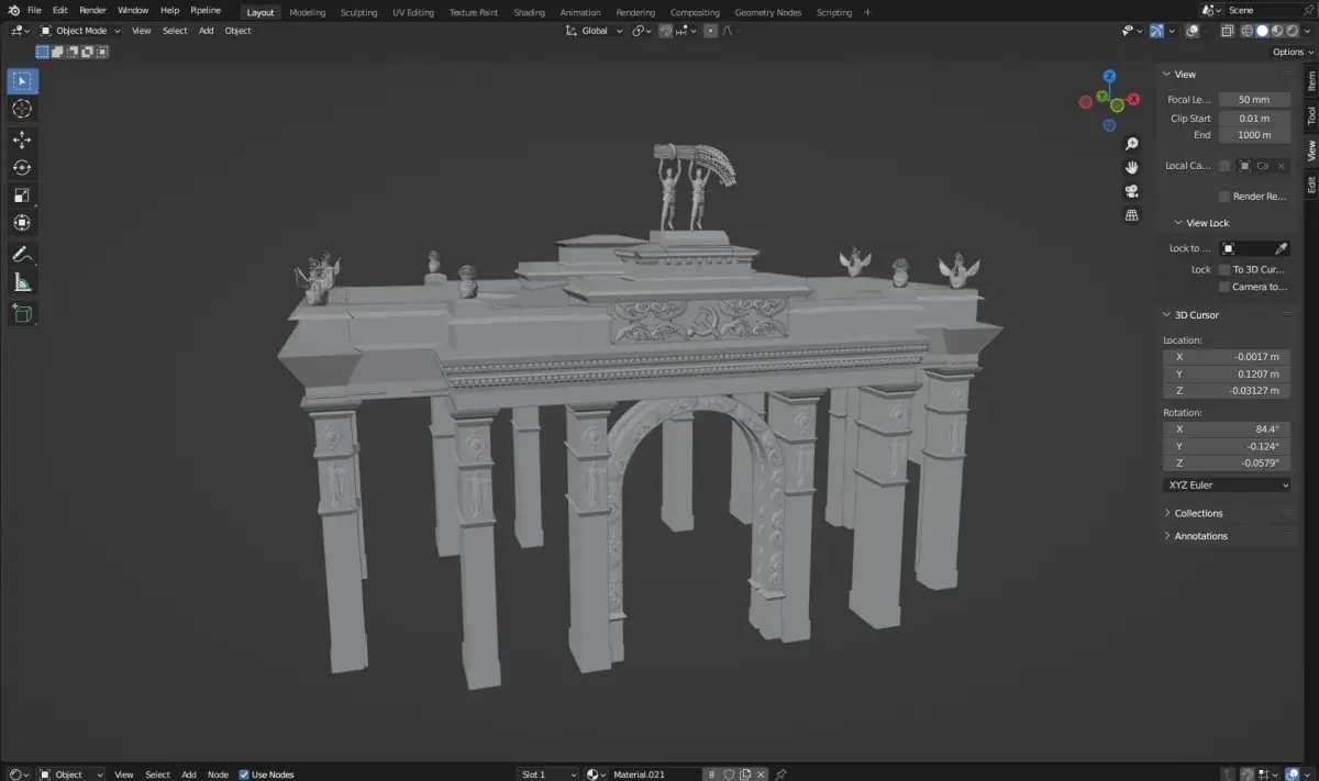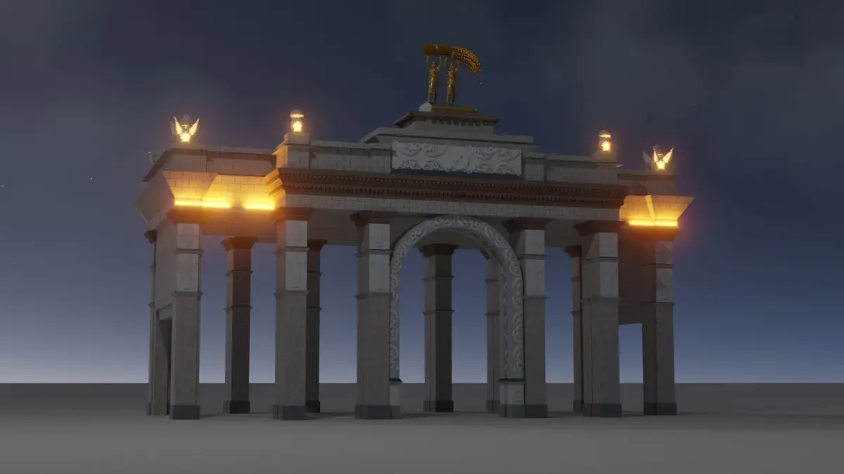This arch is an interpretation of the VDNH Arch in the Moscow VDNH Park. In one file there is a model for 25 million triangles, in the second the same model for 10 million triangles.