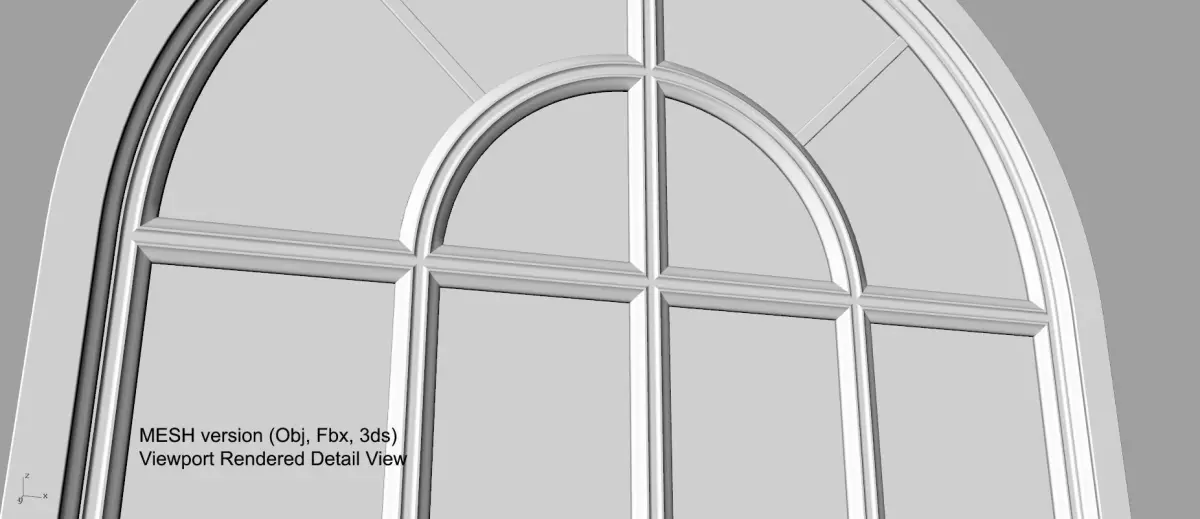 An arch (or radius) window I made as part of a ten windows set I had to create for a project (all available here on CGtrader, sold separately or as a pack). The idea was to have a full set of windows in several forms, all simple but nice looking even in a close-up, without having a very defined style in themselves, so they would fit with as many architectural styles and interior decorations as possible without looking out of place in any of them.