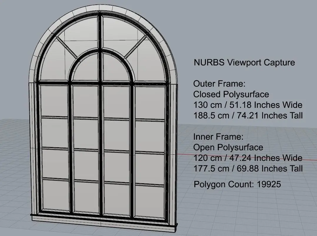 All formats are divided in three basic parts:An outer frame, done as a single CLOSED polysurface, so it can be easily used to boolean or subtract from the wall you mean to place the window in without problems.An Inner frame, done as a single OPEN polysurface, which I hope you'll find perfectly finished to look nice but still very simply done.Glass pieces, which should match perfectly with the inner frame.