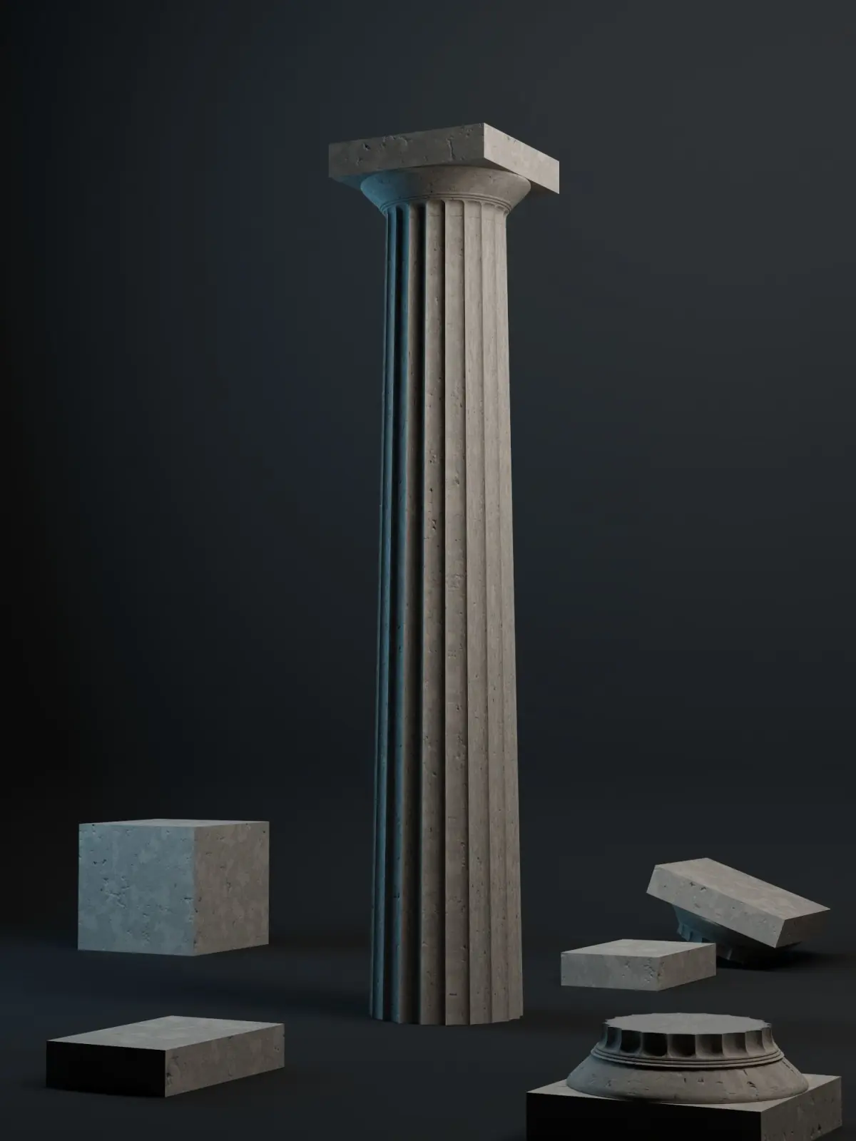 The historical column is taken from Temple of Diana Propylaea at EleusisGreek Doric column was fluted, and had no base, dropping straight into the stylobate.All dimensions and proportions are as true to the historic column as possible. The order is constructed according to the module all the rules and proportions of classical architecture (professional architecture). High quality polygonal model. Only 3d model is present, camera light scene you can use your.
