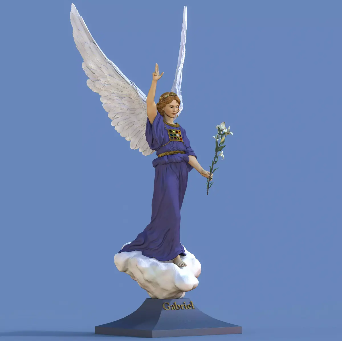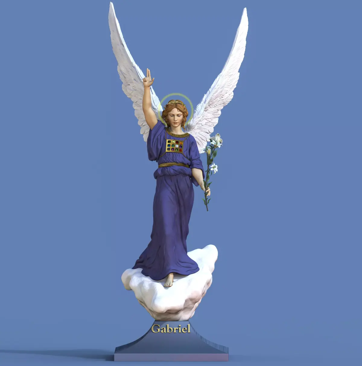 This exquisite 3D model of Archangel Gabriel embodies the purity, grace, and divine mission of the celestial messenger. With majestic wings, a serene yet commanding expression, and a delicate lily in hand — symbol of purity and hope — this sculpture radiates peace and spiritual strength. Standing on a soft cloud, Gabriel’s presence brings harmony and inspiration to any space.