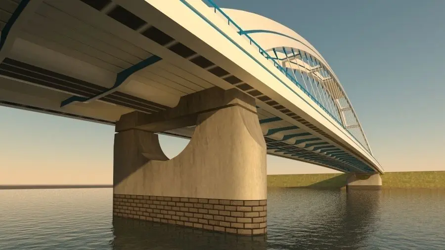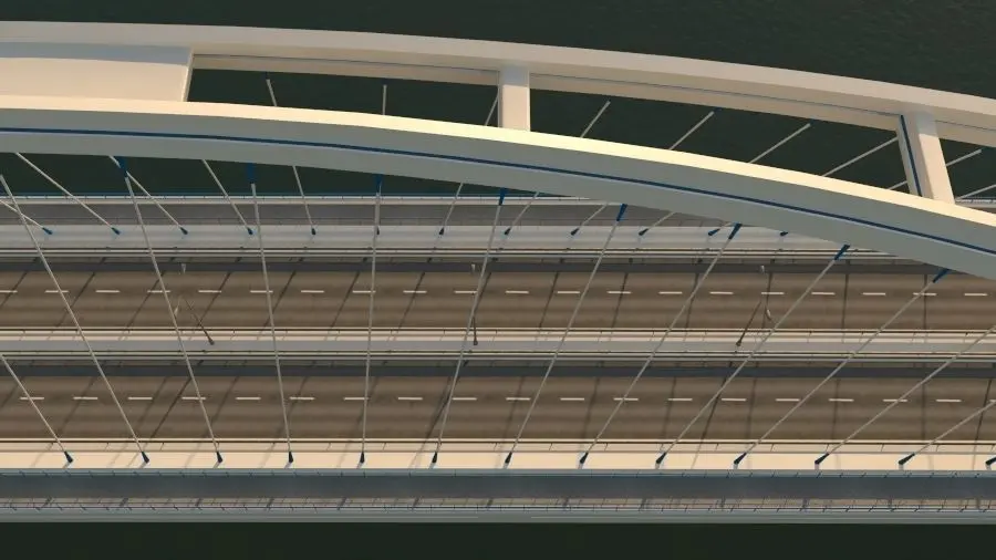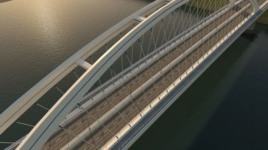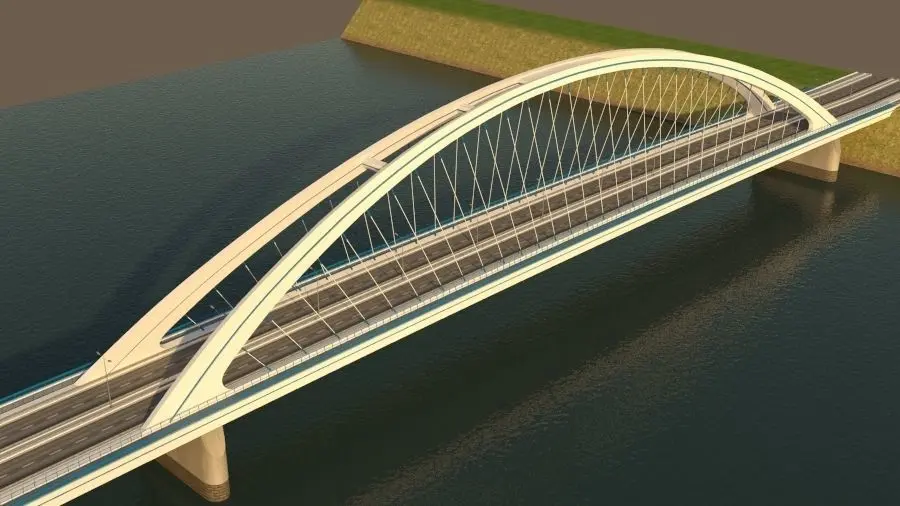 3d model of modern arched bridge, The bridge is created on the basis of arch bridge Apollo in Slovakia. Rps file (render preset),materials, textures and maps included.Everything in file - objects,lights, render settings are prepared to render - see preview pictures.