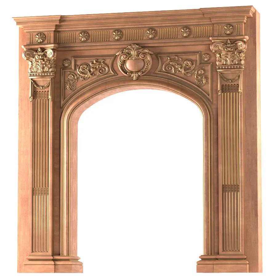Arched portal, Arch, Architectural composition with pilasters, stucco, cartouche, cornice, capitals, rosettes for a classic interior or facadeClassic Architecture Archarched doorwayArcade, Arcwooden panelingDecorative painting, Venetian, Venetian plaster, decorative plaster, walnut wood with gilding and patina